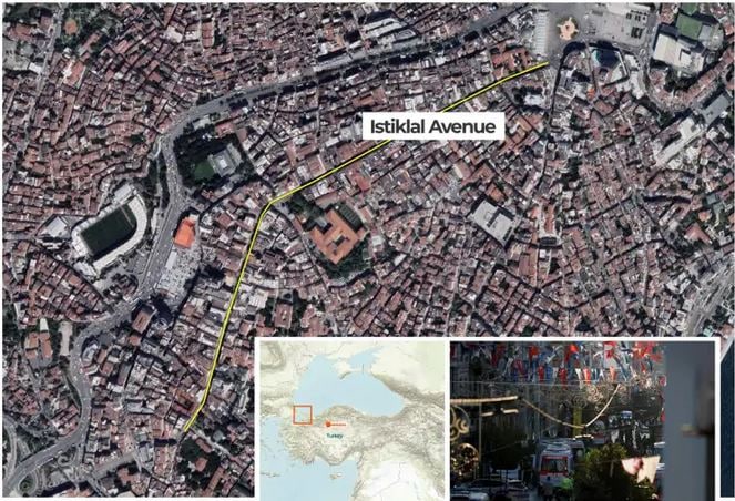 រថយន្តសង្គ្រោះ កាលពីថ្ងៃអាទិត្យ បានបើកទៅកាន់កន្លែងកើតហេតុ នៅលើវិថីអ៊ីស្ដីក្លាល (Istiklal) ដើម្បីដឹកបញ្ជូនអ្នករងរបួសទៅសង្គ្រោះ ខណៈប៉ូលិសត្រូវបានបញ្ជូនទៅកាន់កន្លែងកើតហេតុ ស្ថិតក្នុងសង្កាត់បេយ៉ូហ្គោ (Beyoglu) ទីក្រុងអ៊ីស្តាន់ប៊ូល ប្រទេសតួកគី ជាទីមានមនុស្សកកកុញតាមធម្មតា នៅចុងសប្តាហ៍ជាមួយនឹងអ្នកដើរទិញអ៊ីវ៉ាន់ ភ្ញៀវទេសចរ និង អ្នកដើរកម្សាន្ដជាលក្ខណៈក្រុមគ្រួសារ។