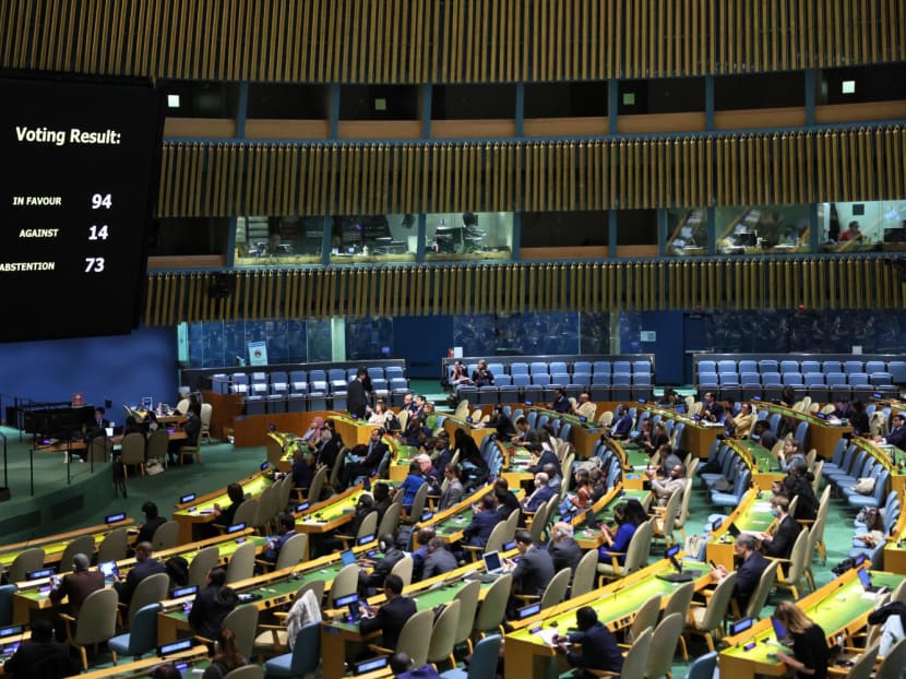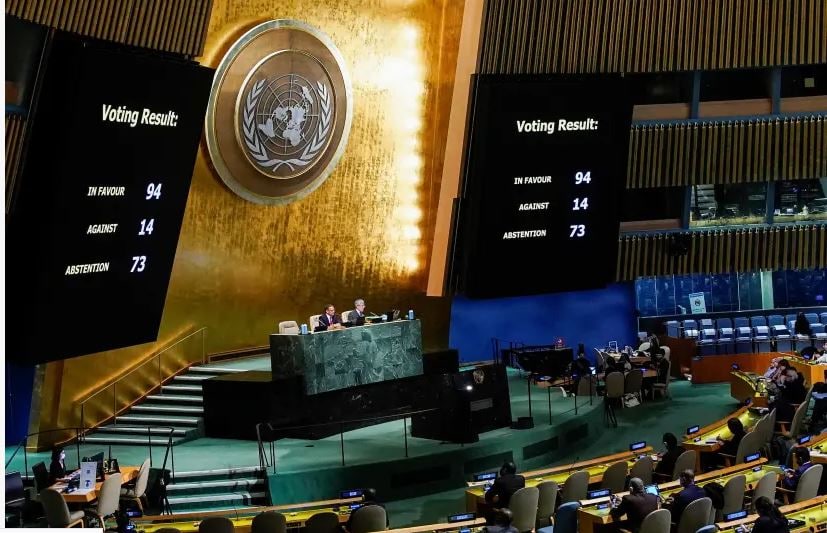 ដោយឡែក ប្រទេសចំនួន១៤ បានបោះឆ្នោតប្រឆាំងនឹងដំណោះស្រាយរបស់មហាសន្និបាត អង្គការសហប្រជាជាតិ រួមមាន រុស្ស៊ី ចិន និង អ៊ីរ៉ង់…ជាដើម ខណៈប្រទេសចំនួន៧៣ បានបោះឆ្នោតអនុបវាទ មានដូចជា ប្រេស៊ីល ឥណ្ឌា និង អាហ្វ្រិកខាងត្បូង…ជាដើម។