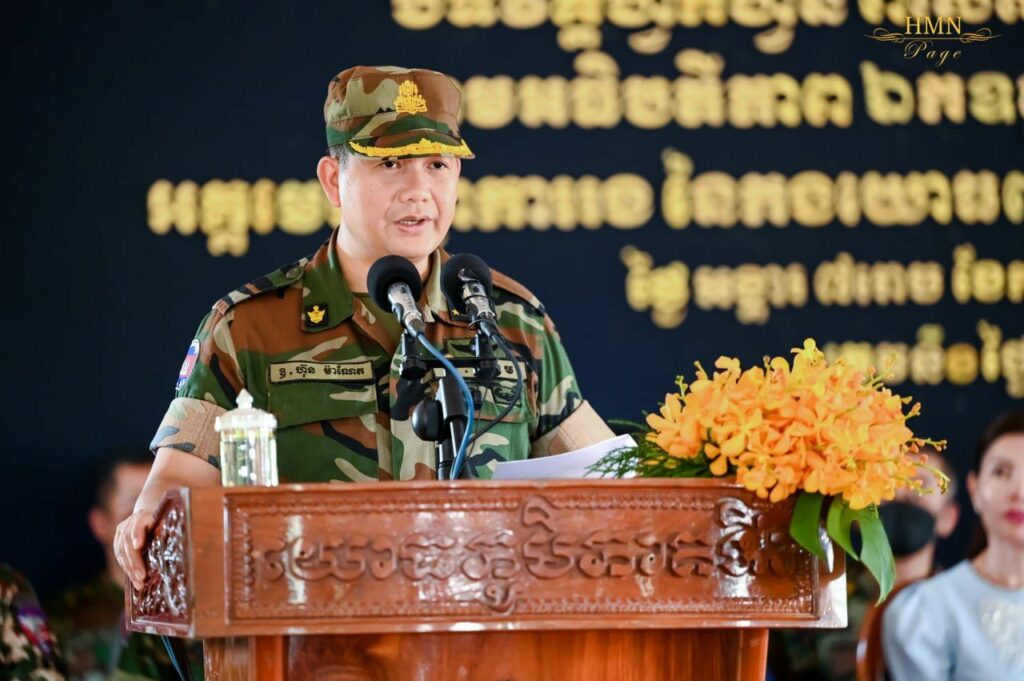 កំពង់ស្ពឺ : ឯកឧត្តម ឧត្តមសេនីយ៍ឯក ហ៊ុន ម៉ាណែត អគ្គមេបញ្ជាការរង នៃកងយោធពលខេមរភូមិន្ទ មេបញ្ជាការកងទ័ពជើងគោក នាថ្ងៃទី១៥ ខែវិច្ឆិកាឆ្នាំ២០២២បានអញ្ជើញក្នុងពិធីបិទវគ្គហ្វឹកហ្វឺនពិសេសបំប៉នជំនាញការពារព្រំដែនគោកឆ្នាំ២០២២។