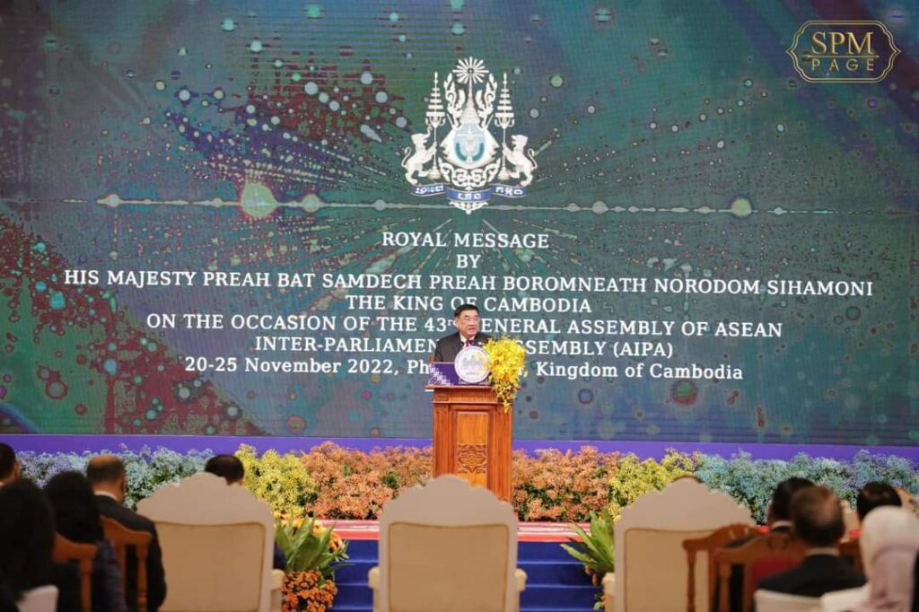 ភ្នំពេញ៖ សុន្ទរថាគន្លឹះរបស់ សម្តេចអគ្គមហាសេនាបតីតេជោ ហ៊ុន សែន នាយករដ្ឋមន្ត្រី នៃព្រះរាជាណាចក្រកម្ពុជា ថ្លែងក្នុងពិធីបើកមហាសន្និបាតអន្តរសភាអាស៊ាន លើកទី៤៣ (AIPA-43) ក្រោមមូលបទ ” បោះជំហានជាមួយគ្នា ដើម្បីចីរភាព បរិយាបន្ន និងភាពធន់របស់អាស៊ាន ” នៅថ្ងៃទី២០ ខែវិច្ឆិកា ឆ្នាំ២០២២។