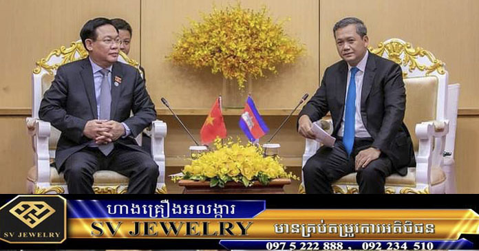 ភ្នំពេញ:ឯកឧត្តម ឧត្តមសេនីយ៍ឯក ហ៊ុន ម៉ាណែត អគ្គមេបញ្ជាការរង នៃកងយោធពលខេមរភូមិន្ទ មេបញ្ជាការកងទ័ពជើងគោក កាលពីរសៀលថ្ងៃទី២១ វិច្ឆិកានេះបានជួបសន្ទនាជាមួយ ឯកឧត្តម វឿង ឌិញហ្វេ ប្រធានរដ្ឋសភានៃសាធារណរដ្ឋសង្គមនិយមវៀតណាម ក្នុងដំណើរទស្សនកិច្ចជាផ្លូវការមកកាន់ព្រះរាជាណាចក្រកម្ពុជា និងចូលរួមមហាសន្និបាតអន្តរសភាអាស៊ីអាគ្នេយ៍លើកទី៤៣ នៅរាជធានីភ្នំពេញ ។
