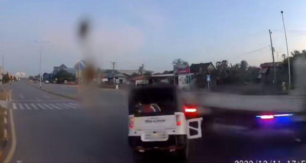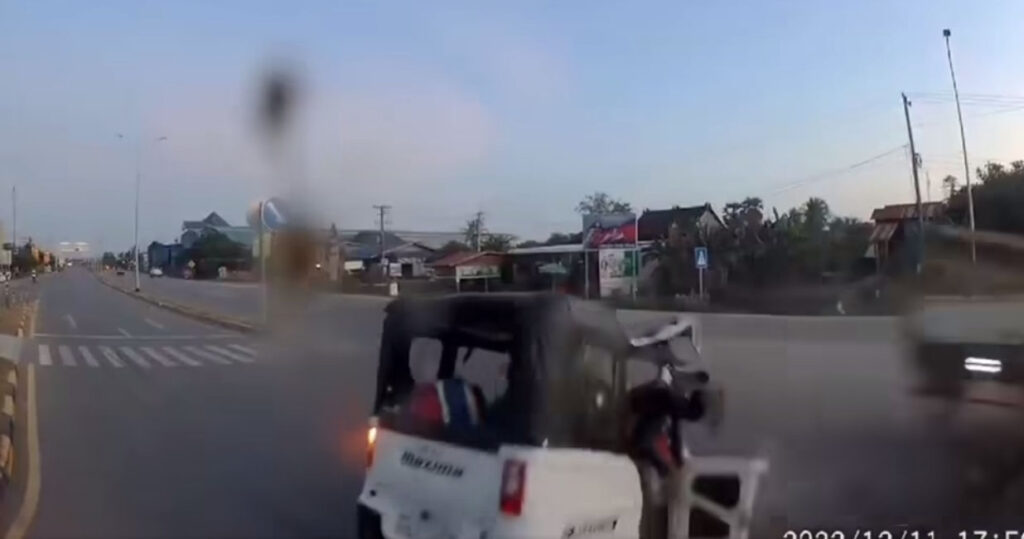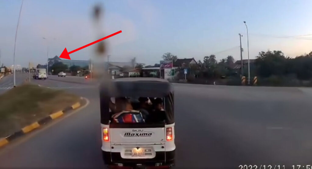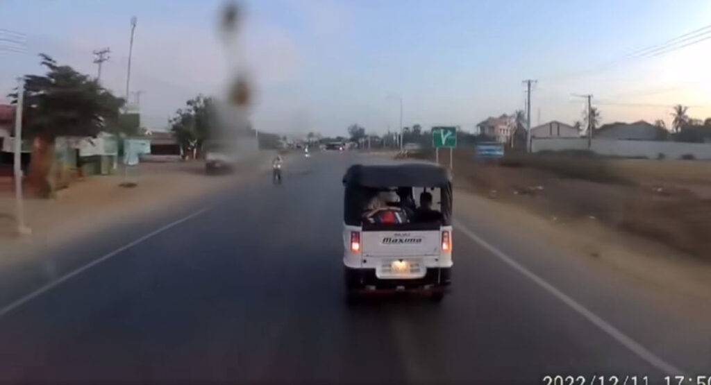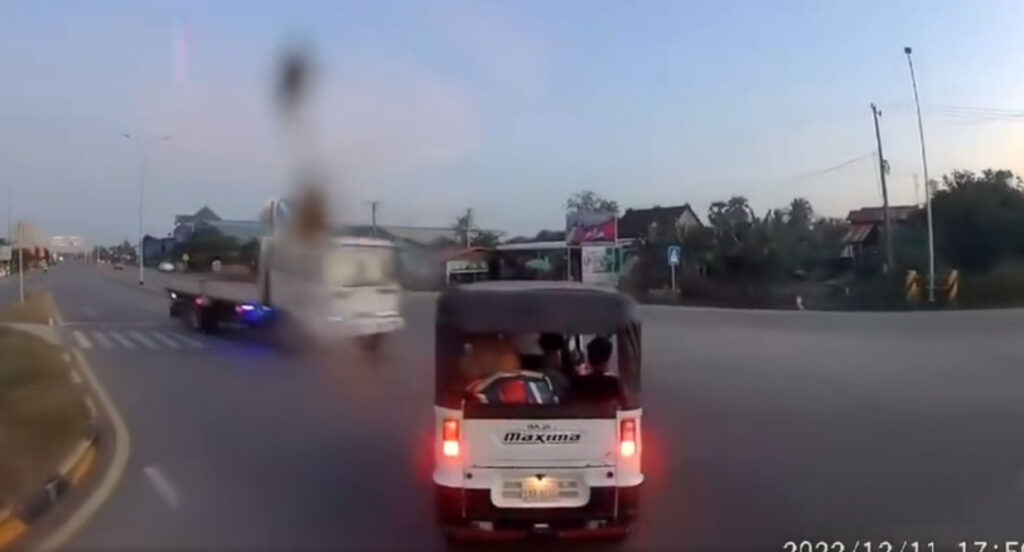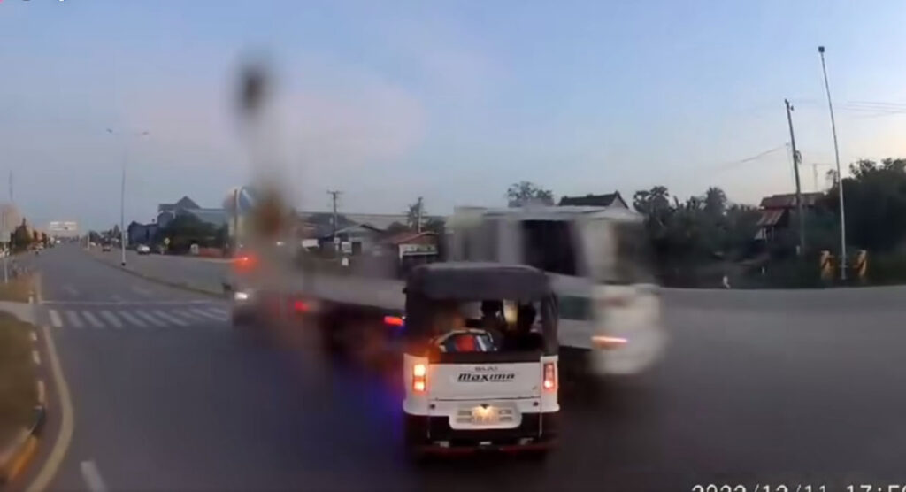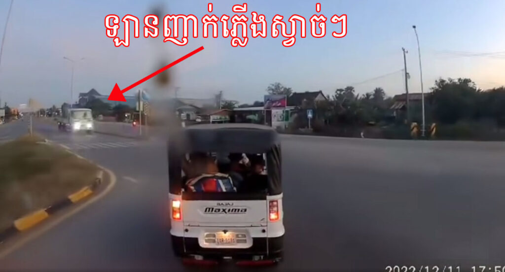 តាមរយៈវីដេអូស្តែងៗ បានបង្ហាញឲ្យឃើញ ខណៈមកដល់ជិតត្រង់ផ្លូវបំបែក គេបានឃើញឡានធំ វ៉ៃភ្លើងហ្វា ប៉ុន្តែ កង់បីបាចាធំ១គ្រឿង ហាក់ពុំឃើញការសុំផ្លូវ និងព្យាយាមបើកឆ្លងផ្លូវទាំងប្រថុយ ដែលជាលទ្ធផល ត្រូវជួបគ្រោះថ្នាក់បែបនេះ។
