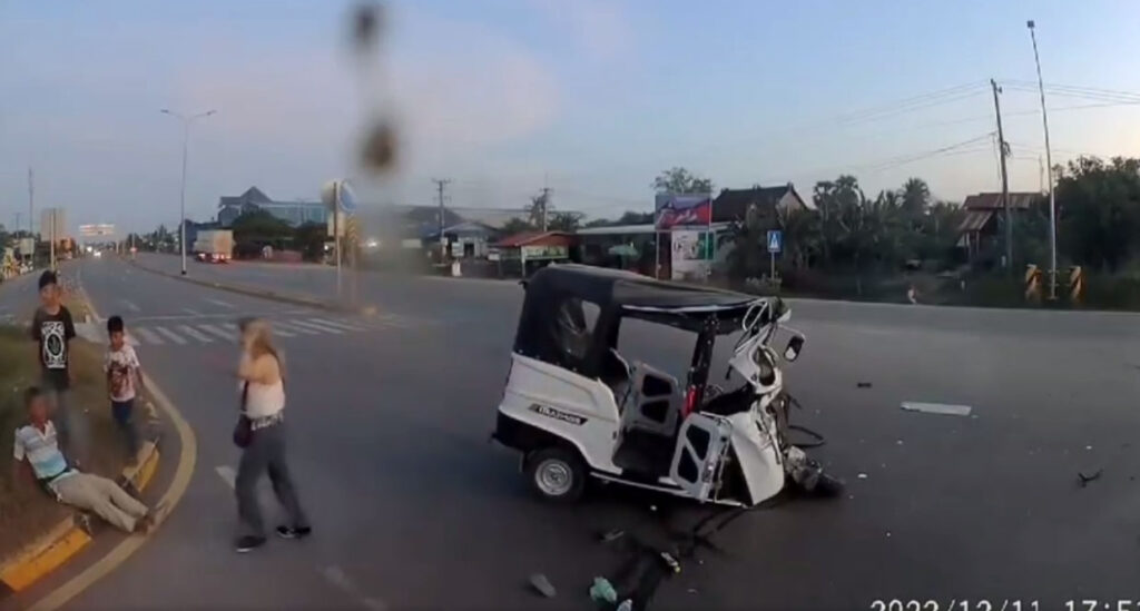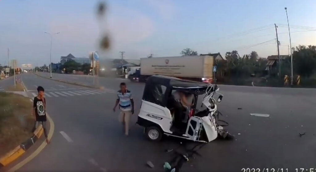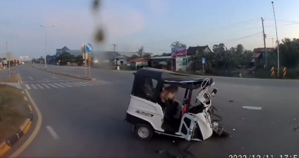 ជាក់ស្តែង ដូចជាករណីជាដើម គឺពិតជាគួរឲ្យរន្ធត់ខ្លាំងណាស់ ដែលកង់បី (PassApp) ធំ១គ្រឿង ដឹកមួយគ្រួសារ ត្រូវរថយន្តធំ១គ្រឿង បុកពេញទំហឹង ខណៈព្យាយាមបើកឆ្លងផ្លូវបំបែក ដោយគ្មានការប្រុងប្រយ័ត្ន។ ប៉ុន្តែ សំណាងហើយ ដែលពុំមាននរណាម្នាក់រងរបួសធ្ងន់ធ្ងរ ដោយគ្រាន់តែអ្នកបើករបួសស្រាល ខណៈកង់បីផ្អែកខាងមុខគឺថាឡើងរួញខ្ទេចតែម្តង។
