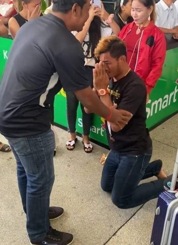 តែអ្វីដែលធ្វើឲ្យចាប់អារម្មណ៍ទៀតនោះ គឺខណៈវិលត្រឡប់មកដល់ព្រលានយន្តហោះភ្នំពេញភ្លាម កីឡាករ ធារ៉ា ក៏បានធ្វើឱ្យមហាជនកាន់តែរំជួលចិត្ត នៅពេលឃើញរូបគេបានលុតជង្គង់សំពះម្តាយឪពុក និងថែមទាំងយកខ្សែក្រវាត់ពាក់ឱ្យលោកឪពុក ជាមួយនឹងទឹកភ្នែក ព្រោះតែរំភើបនឹងជ័យជំនះនេះខ្លាំងពេក៕ រក្សាសិទ្ធិដោយ៖ លឹម ហុង