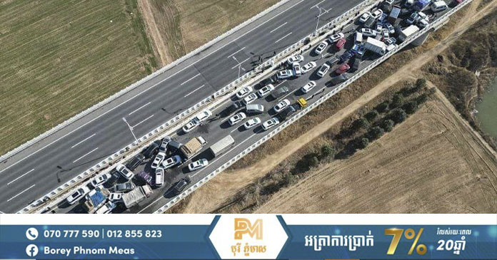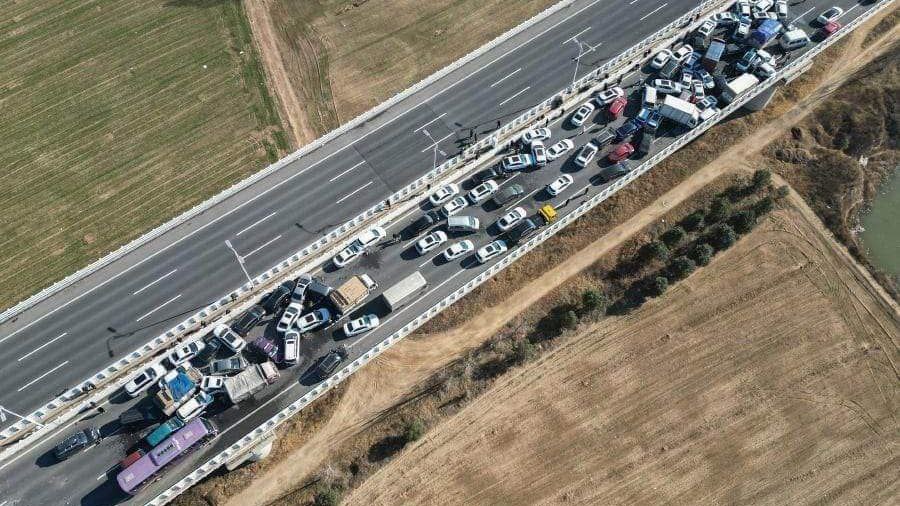 ប្រទេសចិន ៖ រថយន្តជាង២០០គ្រឿងបុកបន្តកន្ទុយគ្នា ប៉ុន្តែមានមនុស្សតែម្នាក់គត់បានស្លា.ប់ ក្រៅពីនេះរងរបួសស្រាល ដែលហេតុការណ៍នេះ បានកើតឡើងនៅលើស្ពានហាយវ៉េក្នុងទីក្រុង ជេងជូ (Zhengzhou) ខេត្តហឺណាន (Henan) ប្រទេសចិន កាលពីថ្ងៃពុធ ទី២៨ ខែធ្នូ ឆ្នាំ២០២២ ដោយសារតែការចុះអ័ព្ទខ្លាំង។