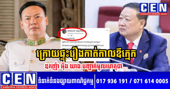 ទោះជាយ៉ាងណា ក្រោយរឿងនេះបានផ្ទុះល្បី ធ្វើឲ្យមហាជនផ្ទុះការសើចចំអក និងហួសចិត្តខ្លាំងរួចមក នៅពេលនេះ ឧកញ៉ា អ៊ឹង ឃាង បានចេញមកបញ្ជាក់ឲ្យមហាជនបានដឹងថា តាមពិតទៅ ឧកញ៉ា និងឪពុកក្មេក គ្មានទំនាស់រឿងអ្វីនោះទេ តែរឿងនេះកើតឡើងដោយសារជនអនាមិក Hack អាខោនហ្វេសប៊ុកឧកញ៉ា ដើម្បីចង់បង្ខូចកិត្តិយស កេរ្តិ៍ឈ្មោះប៉ុណ្ណោះ។