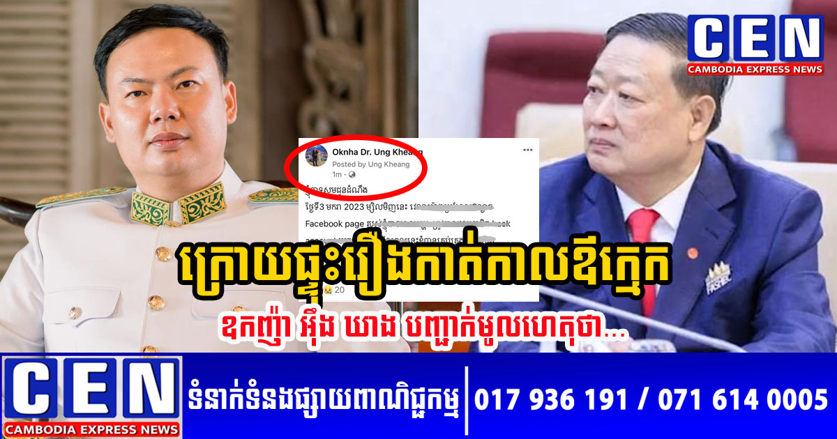 តែទន្ទឹមនឹងសាររចេញមកកាត់កាលឪពុកក្មេកជាឧកញ៉ាដូចគ្នាដ៏មិននឹកស្មានបែបនេះ គេក៏មិនដឹងថា ឧកញ៉ា អ៊ឹង ឃាង មានទំនាស់រឿងអ្វីជាមួយឧកញ៉ា តែ តាំងប៉ ខ្លាំងក្លាកម្រិតណានោះទេ បានជាកូនប្រសាជាឧកញ៉ា សម្រេចចិត្តធ្វើការប្រកាសកាត់កាលឪពុកក្មេកដែលក៏ជាឧកញ៉ាដូចគ្នា ឲ្យមហាជនបានដឹងឮជាសាធារណៈបែបនេះសោះឡើយ!?។