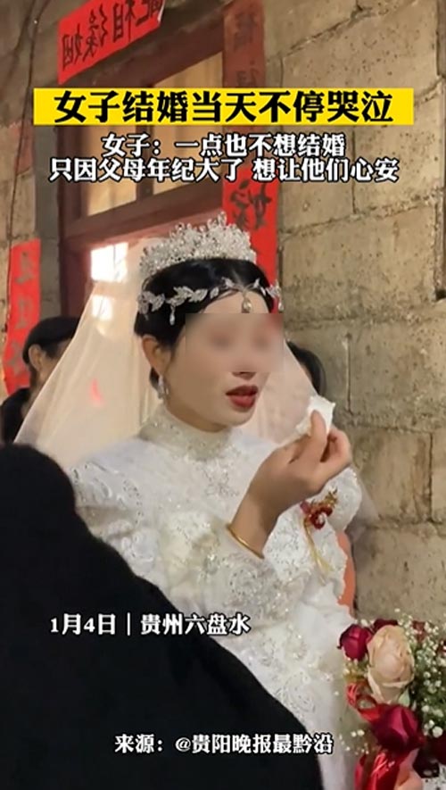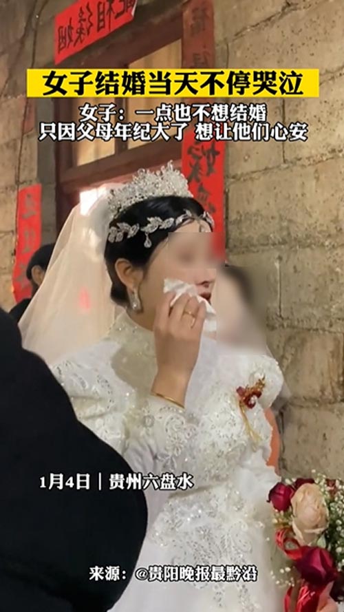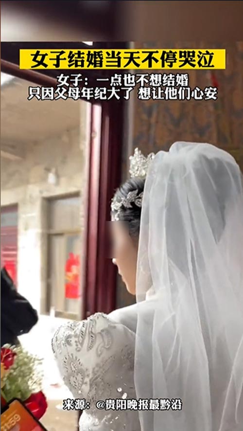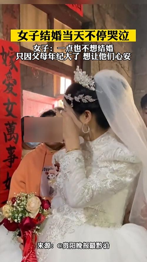 នៅថ្ងៃទី ១០ ខែមករា ឆ្នាំ ២០២៣ គេហទំព័រ South China Morning Post បានរាយការណ៍ថា រូបភាពកូនក្រមុំអាយុ ២០ ឆ្នាំ ដែលបានចូលរោងការទាំងទឹកភ្នែក បានកំពុងបង្កការជជែកវែកញែកយ៉ាងខ្លាំង នៅក្នុងបណ្តាញទំនាក់ទំនងសង្គមចិន ក្រោយកូនក្រមុំខូចចិត្ត បានសារភាពថា រូបនាងគ្មានចិត្តស្រលាញ់បុរសដែលនាងរៀបការជាមួយសូម្បីបន្តិចសោះឡើយ។ ប៉ុន្តែនាងបង្ខំចិត្តយល់ព្រមរៀបការ ព្រោះតែដើម្បីធ្វើឱ្យឪពុកម្តាយរបស់នាងបានសប្បាយចិត្តប៉ុណ្ណោះ។