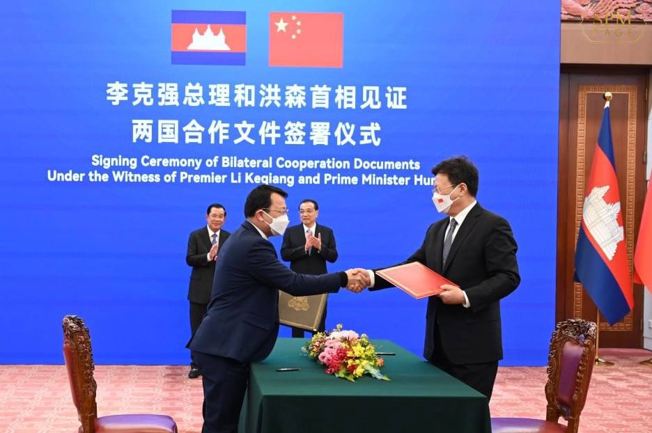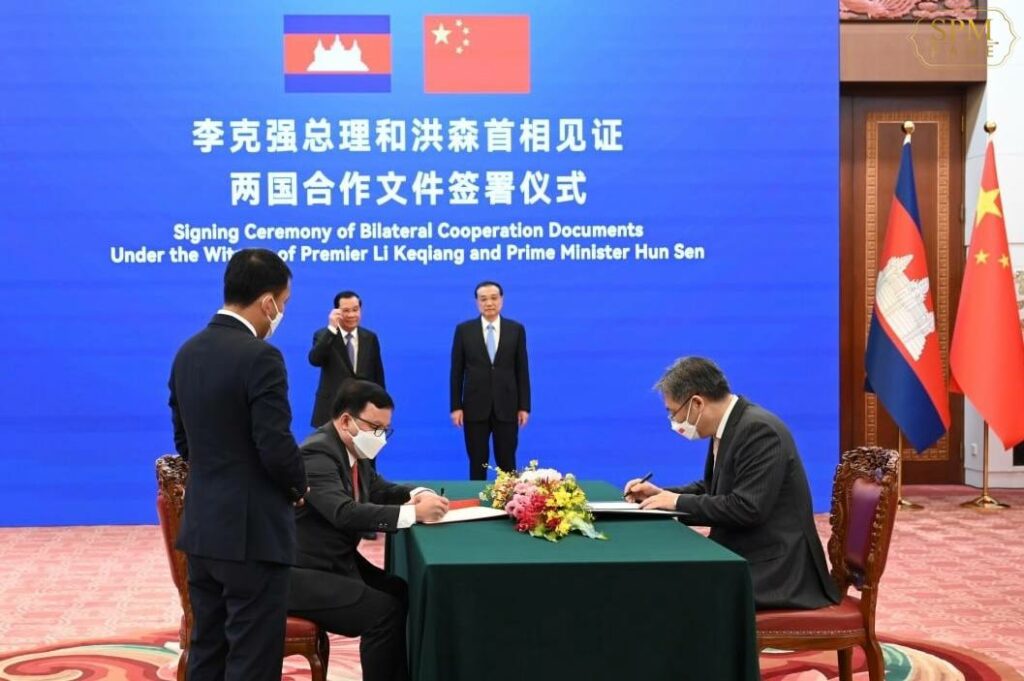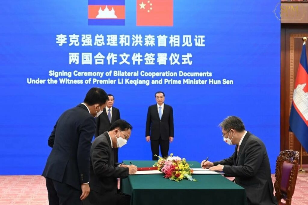ប្រទេសចិន ៖ សម្តេចតេជោ ហ៊ុន សែន និងឯកឧត្តម នាយករដ្ឋមន្រ្តីចិន លី ខឺឈាង បានអញ្ជើញធ្វើជាសាក្សី នៃពិធីចុះហត្ថលេខាលើឯកសារ កិច្ចព្រមព្រៀងសំខាន់ៗចំនួន១២ ត្រូវបានចុះហត្ថលេខា នៅក្នុងដំណើរបំពេញទស្សនកិច្ចផ្លូវការរបស់ សម្តេចតេជោនាយករដ្ឋមន្រ្តី ទៅកាន់សាធារណរដ្ឋប្រជាមានិតចិន ក្នុងនោះរួមមាន ៖ ១-កិច្ចព្រមព្រៀង ស្តីពីការពង្រឹងកិច្ចសហប្រតិ បត្តិការ ក្នុងការកសាងសហគមន៍វាសនារួម កម្ពុជា-ចិន នៅក្នុងយុគសម័យថ្មីរវាងក្រសួងការបរទេស និងសហប្រតិ បត្តិការអន្តរជាតិ នៃព្រះរាជាណាចក្រកម្ពុជា និងក្រសួងការបរទេសចិន ភាគីកម្ពុជាចុះហត្ថលេខាដោយឯកឧត្តម ប្រាក់ សុខុន ឧបនាយករដ្ឋមន្រ្តី រដ្ឋមន្រ្តីក្រសួងការបរទេស និងសហប្រតិបត្តិការអន្តរជាតិ ភាគីចិនចុះហត្ថលេខាដោយឯកឧត្តម ឈីន កាង(Qin Gang) រដ្ឋមន្រ្តីការបរទេស។