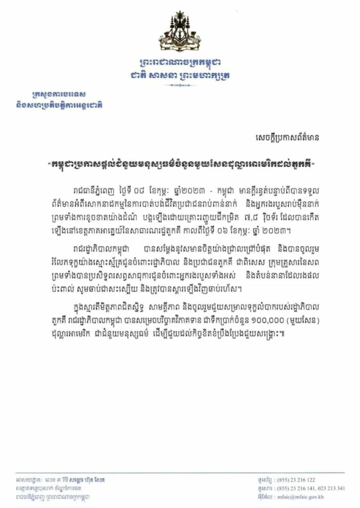 ឯកឧត្ដម ហ៊ុន ម៉ាណែត បានថ្លែងបន្តយ៉ាងដូច្នេះថា “ខ្ញុំត្រូវការការបំភ្លឺមួយដែលមានភាពប្រាកដប្រជានិងការទទួលខុសត្រូវ៖ខ្ញុំសុំឲ្យវិទ្យុ VOD បង្ហាញឯកសារដែលបញ្ជាក់ថា ខ្ញុំបានចុះហត្ថលេខាជំនួសសម្តេចតេជោប្រមុខរាជរដ្ឋាភិបាល ក្នុងការផ្តល់ជំនួយថវិកា ទៅឲ្យប្រទេសតួគីដែលកំពុងរងគ្រោះរញ្ជួយដីផង ព្រោះខ្ញុំមិនបានដឹងរឿងនេះ ហើយខ្ញុំក៏មិនមានសិទ្ធិក្នុងការចុះហត្ថលេខា លើឯកសាររបស់រាជរដ្ឋាភិបាលដែរ។