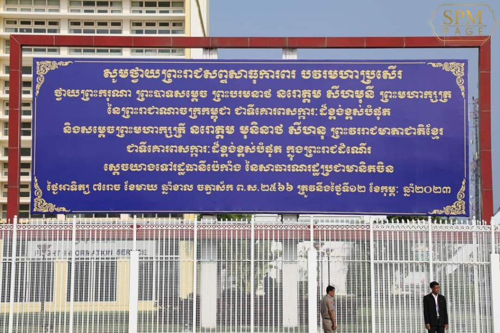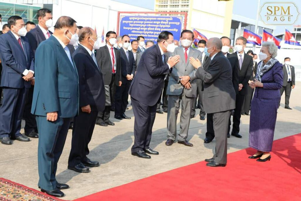 ភ្នំពេញ ៖ នៅថ្ងៃអាទិត្យ ទី១២ ខែកុម្ភៈ ឆ្នាំ២០២៣ សម្ដេចអគ្គមហាសេនាបតីតេជោ ហ៊ុន សែន នាយករដ្ឋមន្ត្រី នៃព្រះរាជាណាចក្រកម្ពុជា បានអញ្ជើញថ្វាយព្រះរាជដំណើរព្រះករុណា ព្រះបាទ សម្តេចព្រះបរមនាថ នរោត្តម សីហមុនី ព្រះមហាក្សត្រនៃកម្ពុជា និងសម្តេចព្រះមហាក្សត្រី នរោត្តម មុនិនាថ សីហនុ ព្រះវររាជមាតាជាតិខ្មែរ ជាទីគោរពសក្ការៈដ៏ខ្ពង់ខ្ពស់បំផុត យាងទៅពិនិត្យព្រះរាជសុខភាព នៅទីក្រុងប៉េកាំង ប្រទេសចិន ចាប់ពីថ្ងៃទី១២ ខែកុម្ភៈ ឆ្នាំ២០២៣ នេះតទៅ។