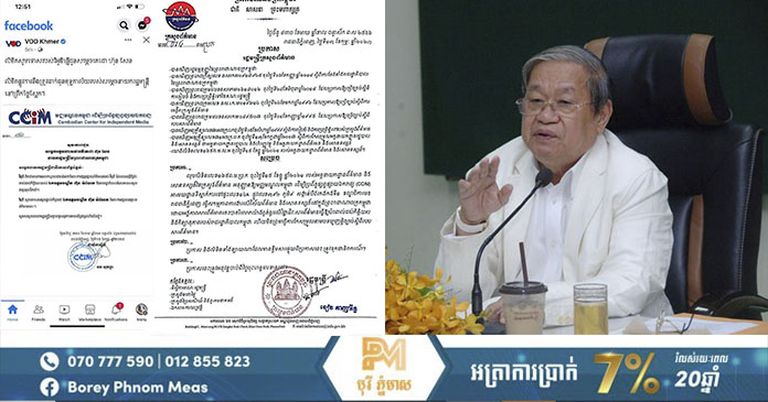 ភ្នំពេញ ៖ក្រសួងព័ត៌មាននៅថ្ងៃទី១៣ ខែកុម្ភៈ ឆ្នាំ២០២៣ បានប្រកាស លុបមជ្ឈមណ្ឌលកម្ពុជា ដើម្បីប្រព័ន្ធផ្សព្វផ្សាយឯករាជ្យ (CCIM) ធ្វើសកម្មភាពការងារលើវិស័យព័ត៌មាន និងសោតទស្សន៍នៅក្នុងព្រះរាជាណាចក្រកម្ពុជា ។