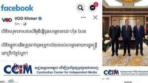 ភ្នំពេញ ៖ សម្តេចតេជោ ហ៊ុន សែន នាយករដ្ឋមន្រ្តីកម្ពុជា នៅព្រឹកថ្ងៃទី១៣ ខែកុម្ភៈ ឆ្នាំ២០២៣ នៅតែសម្រេចឱ្យក្រសួងព័ត៌មានពិនិត្យលើផ្លូវច្បាប់លុបអាជ្ញាប័ណ្ណរបស់សារព័ត៌មាន VOD ចំពោះការផ្សាយបំផ្លើសការពិតទាំងស្រុង បង្កាច់កេរ្ដិ៍ និងញុះញង់ឲ្យមានការរើសអើង ដូចដែលសម្ដេចបានលើកឡើងកាលពីពេលល្ងាច ថ្ងៃទី១២ ខែកុម្ភៈ ឆ្នាំ២០២៣នោះដដែល បើទោះបី សារព័ត៌មាន VOD នេះ បានសម្រេចសូមទោស សម្តេចតេជោ ហ៊ុន សែន និងលោកបណ្ឌិត ហ៊ុន ម៉ាណែត ចំពោះកំហុសឆ្គងនៃការផ្សាយរបស់ខ្លួននោះក៏ដោយ ប៉ុន្តែអ្វីៗវាហួសពេលអស់ទៅហើយ។