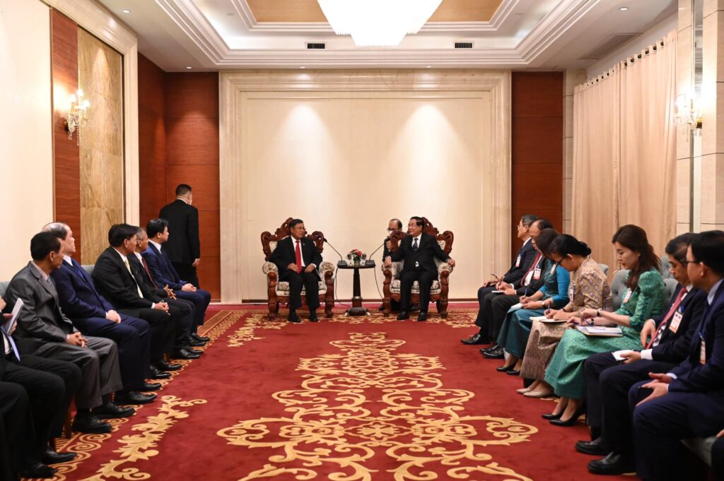 ឯកឧត្តមប្រធានរដ្ឋសភា បានផ្ញាំផ្ញើសាកសួរសុខទុក្ខជូនចំពោះ សម្តេចអគ្គមហាពញាចក្រី ហេង សំរិន ប្រធានរដ្ឋសភា សម្តេចវិបុលភក្តី សាយ ឈុំ ប្រធានព្រឹទ្ធសភា នៃព្រះរាជាណាចក្រកម្ពុជា ។ សម្តេចតេជោនាយករដ្ឋមន្រ្តីមានប្រសាសន៍ថ្លែងអំណរគុណ ជូនចំពោះ ឯកឧត្តមប្រធានសភាឡាវ ដែលបានទទួលជួបធ្វើកិច្ចសន្ទនាជាមួយសម្តេច។ សម្តេចតេជោនាយករដ្ឋមន្រ្តីមានប្រសាសន៍ចាត់ទុកថា ដំណើរទស្សនកិច្ចរបស់សម្តេចទៅកាន់ប្រទេសឡាវនៅពេលនេះ នឹងជួយជំរុញកិច្ចសហប្រតិបត្តិការលើគ្រប់វិស័យ នៃប្រទេសទាំងពីរឲ្យកានតែ រឹងមាំទ្វេឡើងថែមទៀត។