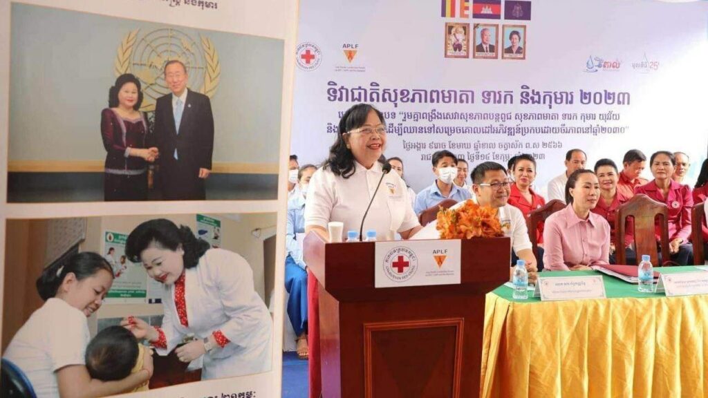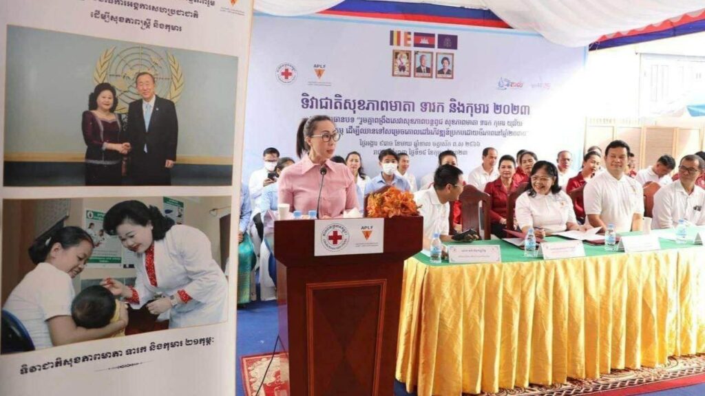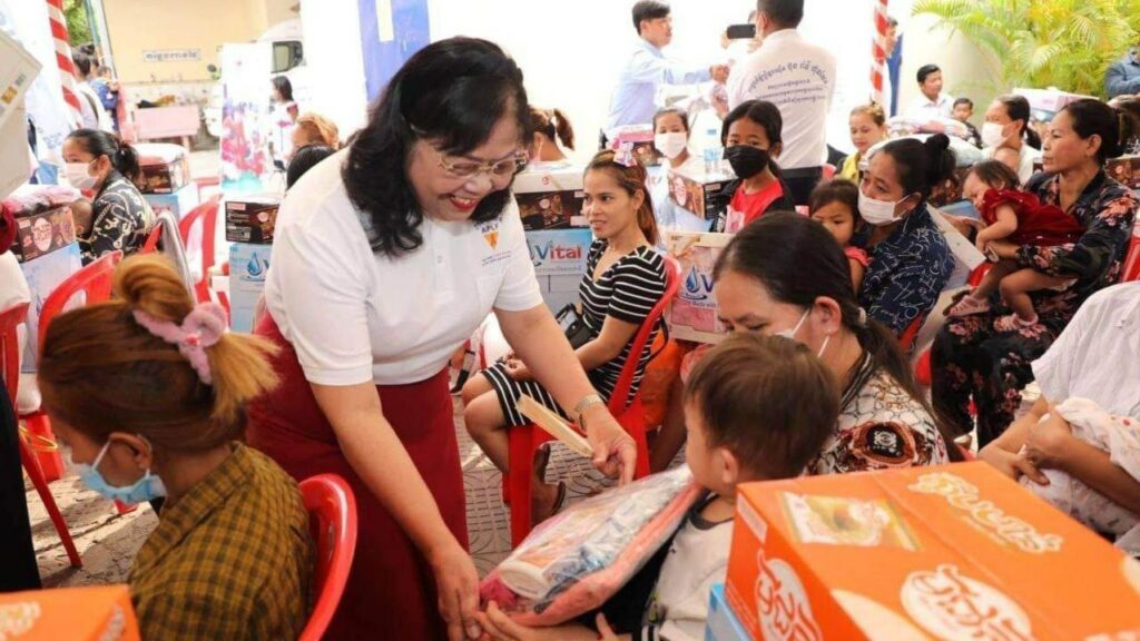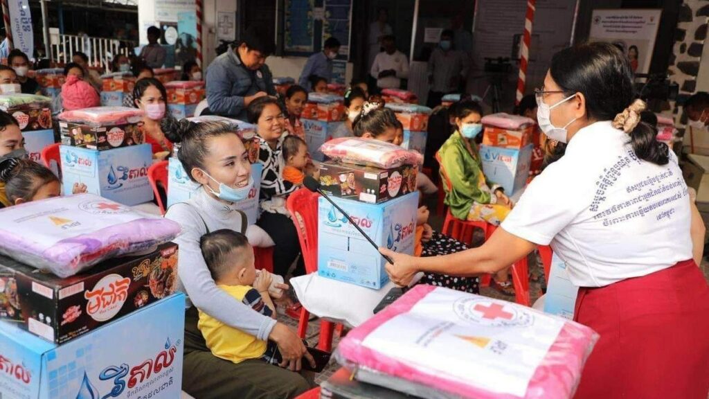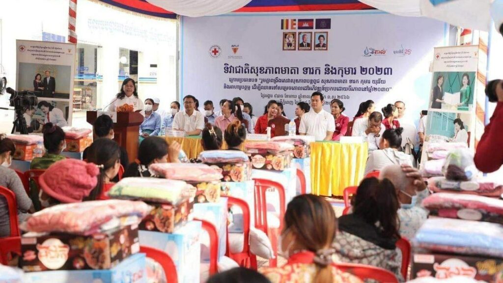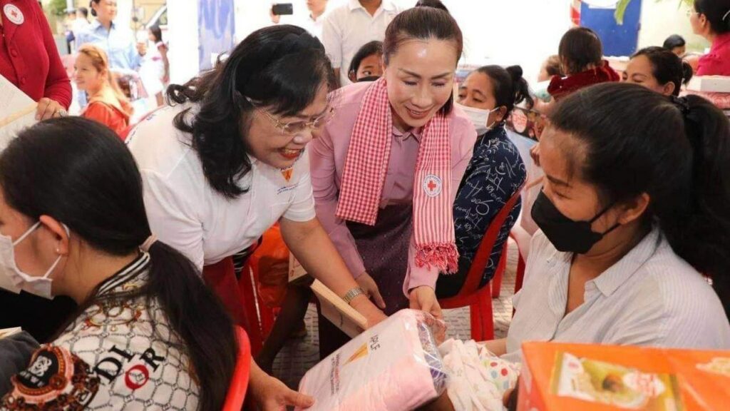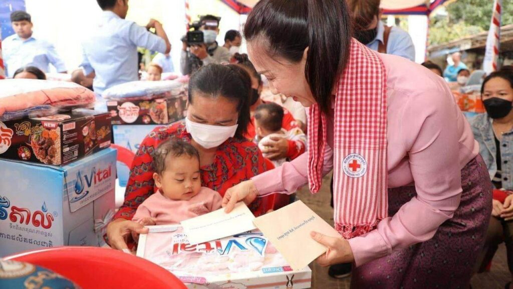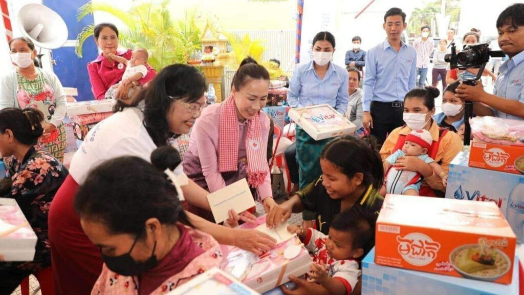 ភ្នំពេញ ៖ សម្ដេចកិត្ដិព្រឹទ្ធបណ្ឌិត ប៊ុន រ៉ានី ហ៊ុនសែន ប្រធានកាកបាទក្រហមកម្ពុជា និងជាឥស្សរជនឆ្នើមថ្នាក់ជាតិ នៅថ្ងៃទី១៤ ខែកុម្ភៈ ឆ្នាំ២០២៣នេះ បានចាត់ ក្រុមការងារ ដឹកនាំដោយ លោកស្រី ម៉ែន នារីសោភ័គ អគ្គលេខាធិការរងទី១ កាកបាទក្រហមកម្ពុជា និងជាអនុប្រធានអចិន្ដ្រៃយ៍ក្រុមការងារឥស្សរជនឆ្នើមថ្នាក់ជាតិ បន្ដចុះផ្សព្វផ្សាយអប់រំសុខភាព ដល់ស្ដ្រីមានផ្ទៃពោះ និងស្ដ្រីក្រោយសម្រាលកូនរួច ប្រមាណជិត ១០០នាក់ នៅខណ្ឌពោធិ៍សែនជ័យ រាជធានីភ្នំពេញ។