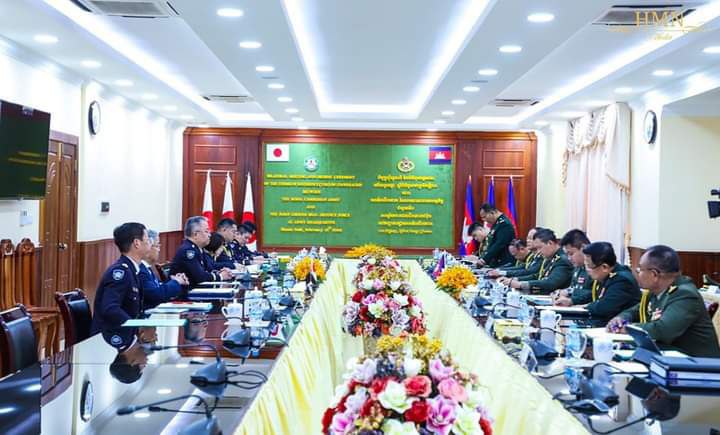 ភ្នំពេញ ៖ នៅថ្ងៃទី១៥ ខែកុម្ភៈ ឆ្នាំ២០២៣ នេះ នៅបញ្ជាការដ្ឋានកងទ័ពជើងគោក នៃកងយោធពលខេមរភូមិន្ទ ឯកឧត្តម ឧត្តមសេនីយ៍ឯក ហ៊ុន ម៉ាណែត អគ្គមេបញ្ជាការរង នៃកងយោធពលខេមរភូមិន្ទ មេបញ្ជាការកងទ័ពជើងគោក បានជួបប្រជុំពិភាក្សាការងារទ្វេភាគីជាមួយនឹង ឯកឧត្តម នាយឧត្តមសេនីយ៍ យ៉ូស៊ីដា យ៉ូស៊ីហ៊ីដេ (Yoshida Yoshihide) មេបញ្ជាការកងស្វ័យការពារជើងគោកជប៉ុន ដែលកំពុងដឹកនាំគណៈប្រតិភូបំពេញទស្សនកិច្ចផ្លូវការនៅព្រះរាជាណាចក្រកម្ពុជា ស្របពេលនឹងការប្រារព្ធខួបអនុស្សារីយ៍លើកទី៧០ នៃការបង្កើតចំណងការទូតរវាងប្រទេសកម្ពុជា និងប្រទេសជប៉ុន នៅក្នុងឆ្នាំ២០២៣ នេះ។