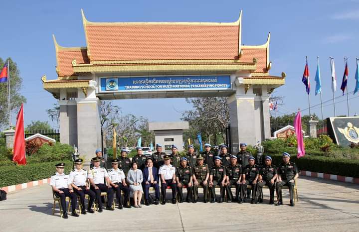 កំពង់ស្ពឺ : នៅសាលាហ្វឹកហ្វឺនកងកម្លាំងរក្សាសន្តិភាពពហុជាតិ នាស្រុកភ្នំស្រួច ខេត្តកំពង់ស្ពឺ នៅថ្ងៃទី១៧ ខែកុម្ភ: ឆ្នាំ២០២៣នេះ នាយឧត្តមសេនីយ៍ សែម សុវណ្ណនី អនុប្រធានគណៈកម្មាធិការជាតិ និងជាអគ្គនាយកមជ្ឈមណ្ឌលជាតិរក្សាសន្តិភាព ទទួលស្វាគមន៍ ឯកឧត្តម នាយឧត្តមសេនីយ៍ YOSHIDA YOSHIHDE មេបញ្ជាការកងស្វ័យការពារជើងគោកជប៉ុន និងគណៈប្រតិភូកងស្វ័យការពារជើងគោកជប៉ុន០៦រូប បានអញ្ជើញទស្សនកិច្ចនៅសាលាហ្វឹកហ្វឺនកងកម្លាំងរក្សាសន្តិភាពពហុសាសន៍ (PKO)។