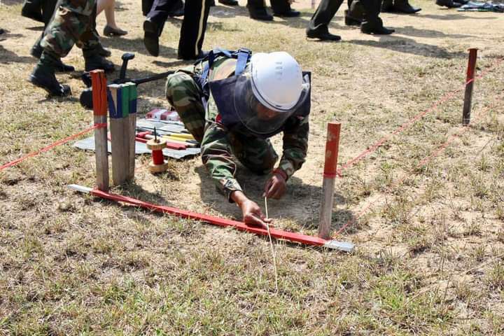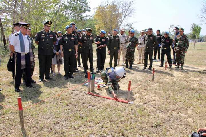 ក្រោយជំនួបពិភាក្សាការងារ គណៈប្រតិភូ បានចុះពិនិត្យកងកម្លាំងកម្ពុជា ធ្វើការហ្វឹកហ្វឺនបោសសម្អាតមីន នៅចំការមីនសិប្បនិមិត្តផងដែរ៕រក្សាសិទ្ធុដោយ:សុវណ្ណារិទ្ធ