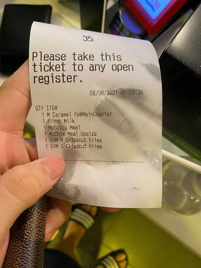 ក្មេងបានរៀបរាប់ទៀតថា បន្ទាប់ពីនោះ គេ និងមិត្តភក្តិរបស់គេ ក៏ដើរទៅចូលហាងលក់នំ ម៉េកដូណាល់។ ពេលទាំង ២នាក់កុម្ម៉ង់អាហាររួចស្រេចហើយ ក៏ទទួលវិក្កយបត្រយកមកទុក។
