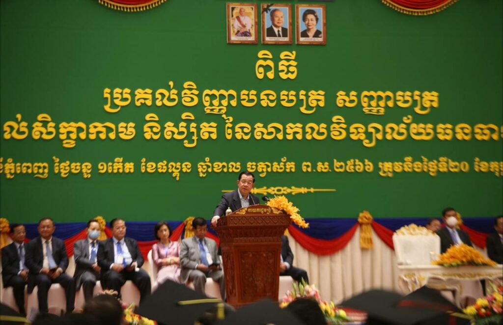 ភ្នំពេញ ៖ ជាអធិបតីក្នុងពិធីប្រគល់វិញ្ញាបនបត្រ និងសញ្ញាបត្រដល់សិស្សវិជ្ជាជីវៈ និងនិស្សិតសាកលវិទ្យាល័យធនធានមនុស្ស ជិត២ពាន់នាក់ នាព្រឹកថ្ងៃទី២០ ខែកុម្ភៈ ឆ្នាំ២០២៣នេះ សម្តេចតេជោ ហ៊ុន សែន នាយករដ្ឋមន្ត្រីកម្ពុជា បានថ្លែងទៅកាន់ក្រុមមន្ត្រី និងក្រុមនិស្សិតថា ខ្ញុំគាំទ្រឲ្យមានការផលិតភាពយន្តអប់រំខ្លី ដើម្បីចូលរួមអប់រំសង្គម ប៉ុន្តែការផលិតភាពយន្តអប់រំខ្លីនោះ មិនគួរប្រើពាក្យពេចន៍ និងសកម្មភាព លើស ជ្រុល ពីស្ថានភាពពិតនៃសង្គមនោះទេ។