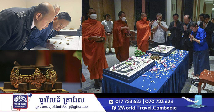 ការប្រគល់-ទទួលរតនវត្ថុទាំងនេះបានប្រព្រឹត្តទៅ ដោយមានការចូលរួមពីសំណាក់គណៈប្រតិភូ កម្ពុជា ដឹកនាំដោយឯកឧត្តម ហ៊ុន ម៉ានី តំណាងរាជរដ្ឋាភិបាលកម្ពុជា ឯកឧត្តមឯកអគ្គរាជទូតកម្ពុជាប្រចាំ ចក្រភពអង់គ្លេស និងតំណាងនាយកដ្ឋានអាស៊ីអាគ្នេយ៍នៃក្រសួងការបរទេស និងខម្ម៉ន់វែលនៃចក្រភព អង់គ្លេស អង្គភាពសិល្បៈនិងបុរាណវត្ថុនៃស្នងការដ្នានគរបាលក្រុងឡុងដ៍ និងក្រុមប្រឹក្សាសិល្បៈអង់ គ្លេស។ គ្រឿងអលង្ការបុរាណខ្មែរនេះ បានបញ្ជូនមកដល់កម្ពុជា នៅថ្ងៃទី១៧ ខែកុម្ភៈ ឆ្នាំ២០២៣ មានដូច ជា ក្បាំងមកុដ ខ្សែក ខ្សែដៃ ខ្សែក្រវាត់ ក្រវិល បន្តោង ស្ថិតក្នុងសម័យមុនអង្គរ និងសម័យអង្គរ ជាគ្រឿង អលង្ការមាស និងលោហៈមានតម្លៃមួយចំនួនធ្លាប់បានផ្សព្វផ្សាយក្នុងសៀវភៅ Khmer Gold: Gifts of the Gods និពន្ធរួមដោយលោកស្រី Emma C. Bunker និងលោក Douglas A.J. Latchford នាឆ្នាំ ២០០៨ ដែលវត្ថុភាគច្រើន សាធារណជនពុំធ្លាប់បានឃើញពីមុនមក។