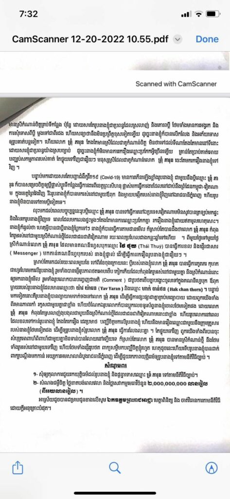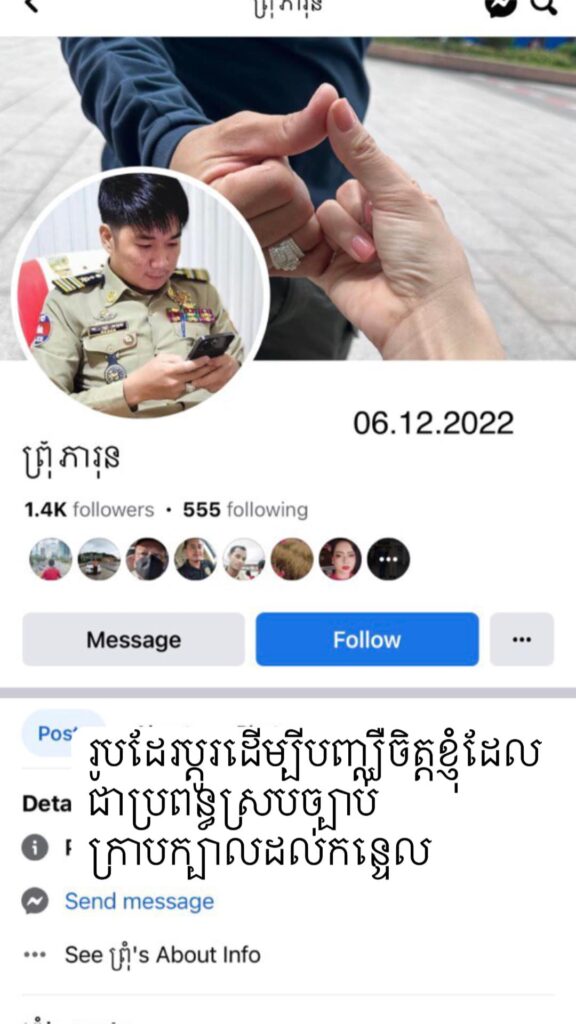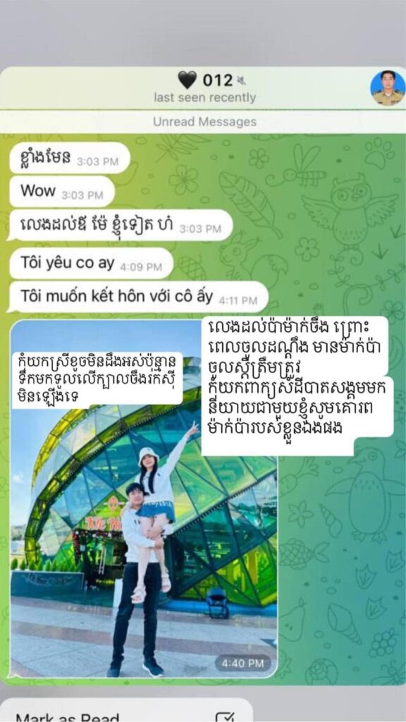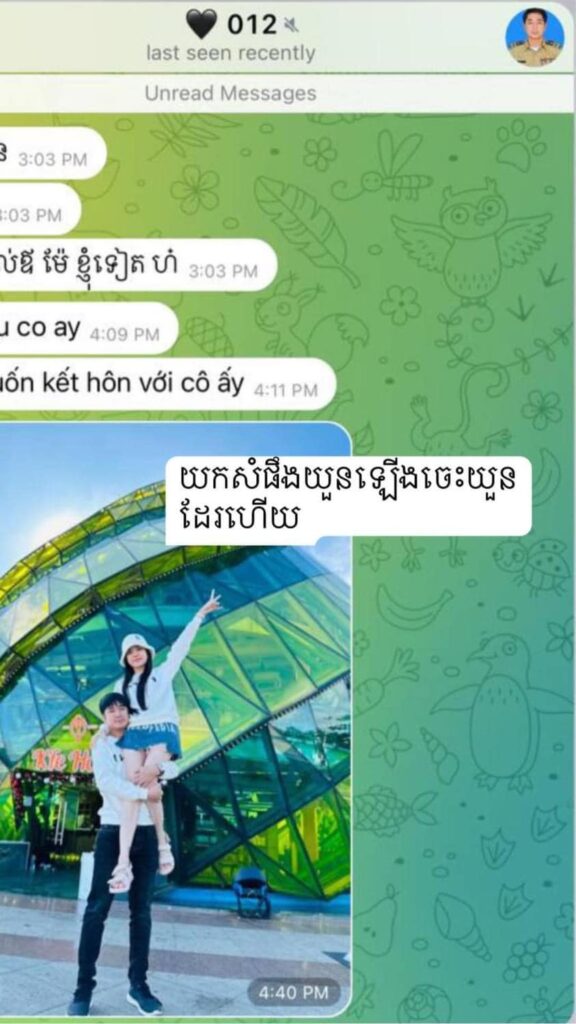 ប្រពន្ធខាងលើ ក៏បានទម្លាយបន្ថែមពីទង្វើផិតក្បត់របស់ប្តីរូបនេះ នៅក្នុងពាក្យបណ្តឹង ឲ្យដឹងថា ប្តីរបស់នាងឈ្មោះ ព្រុំ ភារុន មានស្រីកំណាន់គ្រប់ទីកន្លែង (ទៅដល់ណាមានកន្លែងហ្នឹង) ប៉ុន្តែ ដោយសាររូបនាងជាប្រពន្ធដែលស្រលាញ់ និងគោរពប្តី ថែមទាំងមានការអង្វរក និងការសុំទោសពីប្តី ម្តងជាពីរដង ហើយប្តីសន្យាថានឹងមិនប្រព្រឹត្តខុសទៀតឡើយ ដូច្នេះ នាងក៏បានលើកលែង និងអភ័យទោសឲ្យ។ តែផ្ទុយទៅវិញ នៅពេលបានទៅធ្វើការនៅប្រទេសវៀតណាម ស្រាប់តែលង់ស្នេហ៍នឹងស្រីស្អាតជនជាតិវៀតណាម ហើយពុំត្រឹមលួចរួមរស់នឹងគ្នាយ៉ាងមានសេចក្តីសុខទេ គឺថែមទាំងបញ្ចេញរូបថតឱបកៀកកើយគ្នា បង្ហោះបញ្ឈឺចិត្តមកកាន់រូបនាងជាប្រពន្ធស្របច្បាប់ទៀតផង៕ រក្សាសិទ្ធិដោយ៖ លឹម ហុង