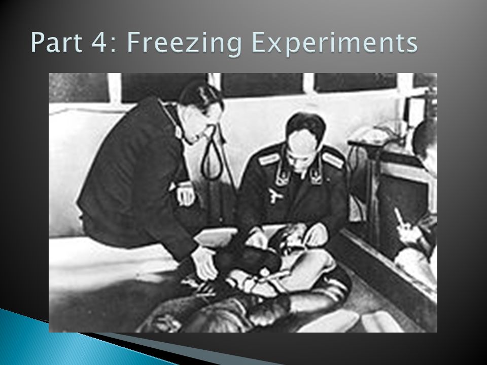 ពួកទាហានផ្ដាច់ការណាហ្ស៊ី បានធ្វើការពិសោធន៍ក្លាស្សេមនុស្ស ឱ្យកកនៅក្នុងមន្ទីរឃុំឃាំង ដោយមានគោលបំណងចង់ព្យាបាលកងទាហានរបស់ពួកខ្លួន ដែលត្រូវស៊ូទ្រាំនឹងសភាពរងាត្រជាក់នៅក្នុងសមរភូមិ។ ពួកគេបាននាំអ្នកទោសជនជាតិជីហ្វ មកចងដៃចងជើងដាក់ត្រាំនៅក្នុងធុងដែលមានទឹកកក…ហើយលទ្ធផលបង្ហាញថា មានអ្នកស្លាប់ជាង ១០០នាក់។