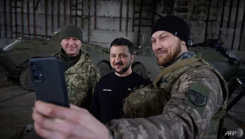 សារព័ត៌មាន Channel News Asia មានមូលដ្ឋាន នៅក្នុងប្រទេសសិង្ហបុរី បានចេញផ្សាយ កាលពីព្រឹក ថ្ងៃព្រហស្បតិ៍ ទី២៣ ខែមីនា ឆ្នាំ២០២៣ ថា លោក វ៉ូឡូឌីមៀរ ហ្សេឡែនស្គី (Volodymyr Zelenskyy) ប្រធានាធិបតីអ៊ុយក្រែន បានបញ្ជាក់ កាលពីថ្ងៃពុធ (ទី២២ ខែមីនា) ថា គាត់បានទៅធ្វើដំណើរទៅសួរសុខទុក្ខកងទ័ព នៅមូលដ្ឋានយោធា នៅជិតសមរភូមិទីក្រុងបាកមូត (Bakhmut) នាភាគខាងកើត ប្រទេសអ៊ុយក្រែន ស្របពេលរុស្ស៊ី វាយប្រហារទៅលើសំណង់អគារ និង បង្កឲ្យមនុស្ស រាប់សិននាក់រងរបួស។
