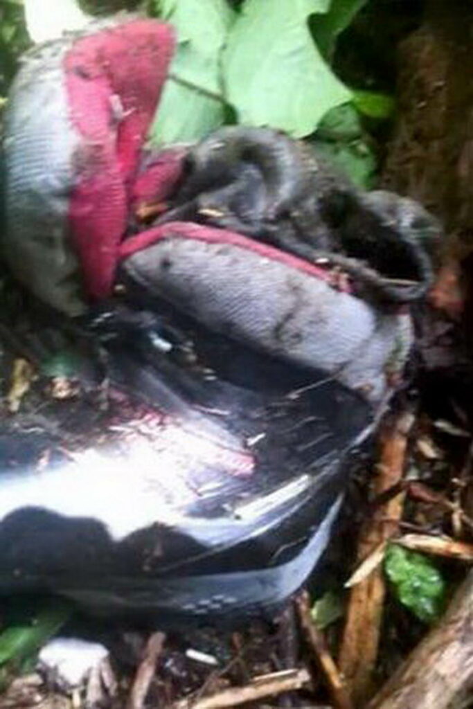 ២ខែតមក មានការរកឃើញគ្រោងឆ្អឹងត្រគាក និងស្បែកជើងប៊ូតកវែង ដែលមានជើងមនុស្សនៅខាងក្នុង បន្ទាប់ពីនោះ ក៏មានការរកឃើញឆ្អឹងផ្សេងៗទៀតយ៉ាងតិច ៣៣ដុំ ដែលស្ថិតនៅរប៉ាត់រប៉ាយតាមមាត់អូរ។