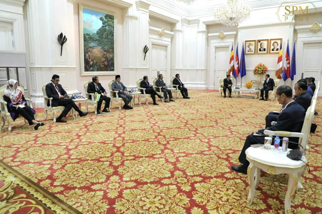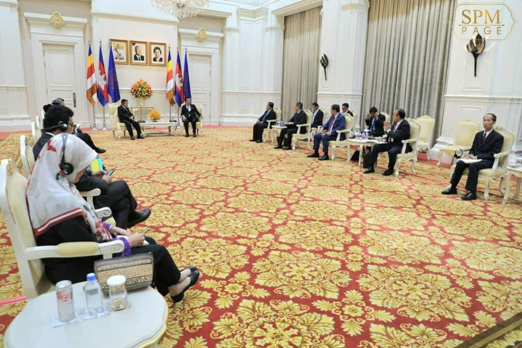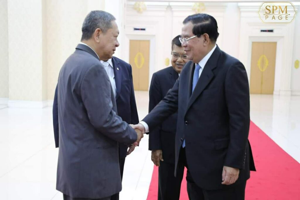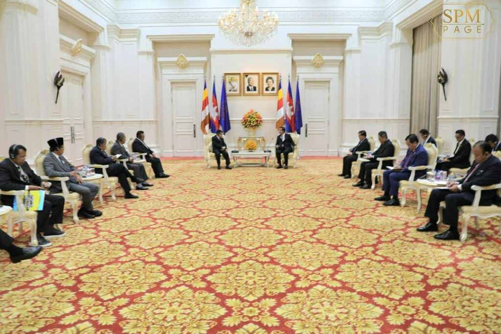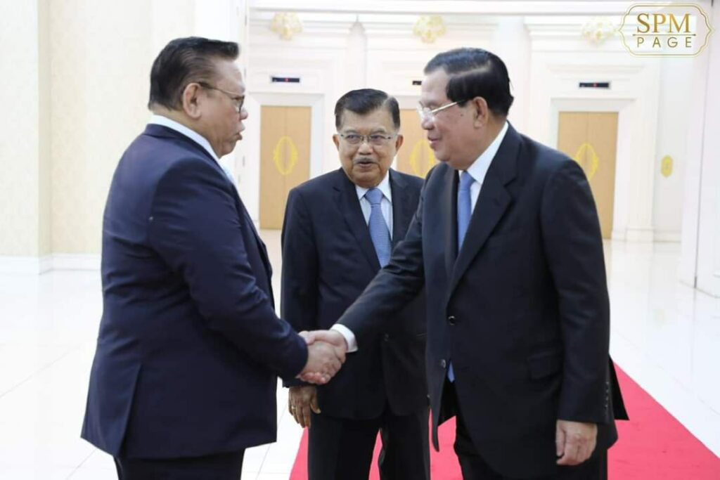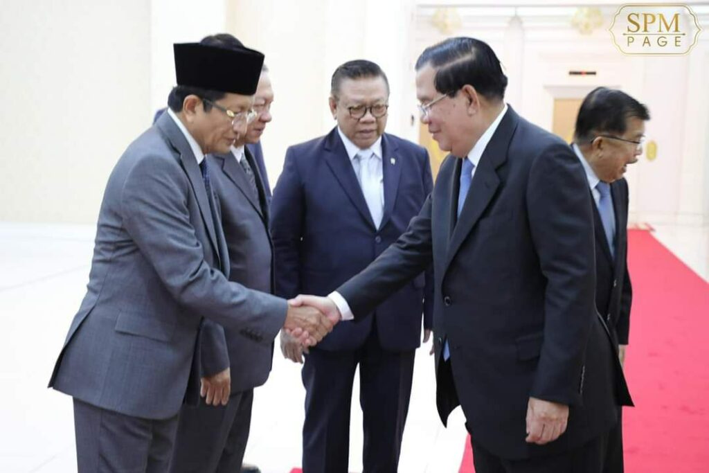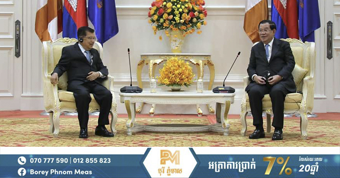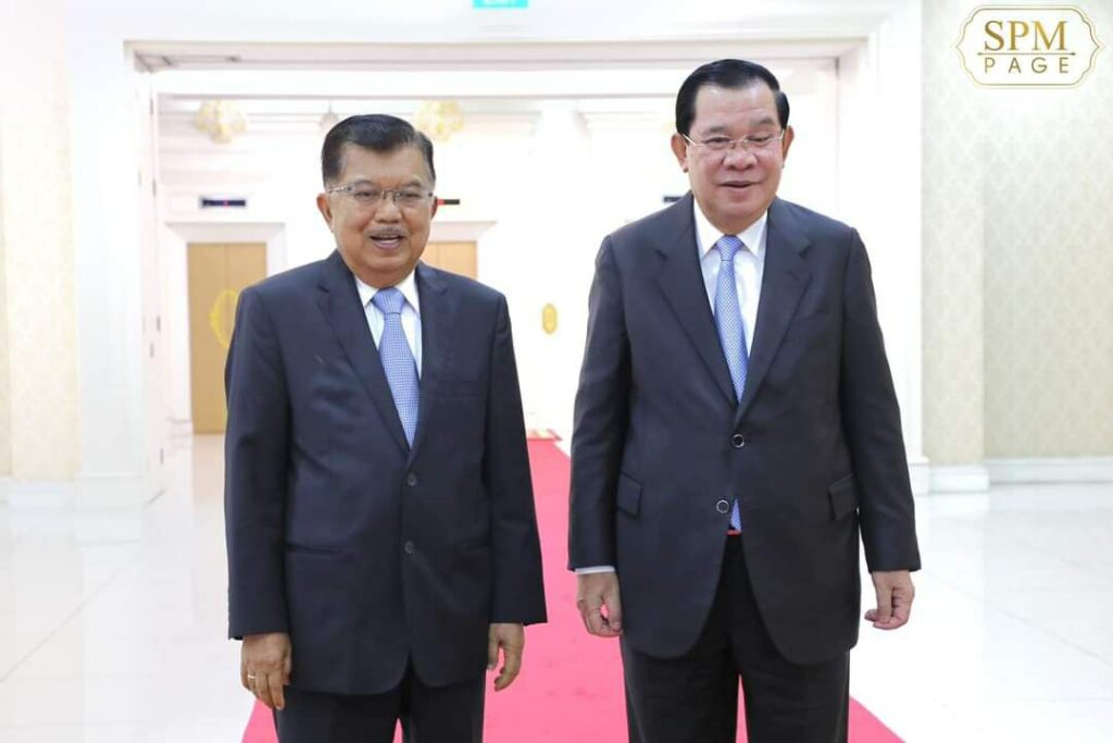ភ្នំពេញ៖ នៅវិមានសន្តិភាព នាព្រឹកថ្ងៃទី២៨ ខែមីនា ឆ្នាំ២០២៣ នេះ សម្ដេចអគ្គមហាសេនាបតីតេជោ ហ៊ុន សែន នាយករដ្ឋមន្ត្រី នៃព្រះរាជាណាចក្រកម្ពុជា បានទទួលជួបពិភាក្សាការងារជាមួយឯកឧត្តម Jusuf Kalla អតីតអនុប្រធានាធិបតីឥណ្ឌូនេស៊ី និងជាប្រធានអង្គការអ្នកប្រជាធិបតេយ្យនិយមកណ្តាលអាស៊ីប៉ាស៊ីហ្វិកអន្តរជាតិ (CAPDI) និងជាប្រធានគណៈកម្មាធិការគ្រប់គ្រងវិហារឥស្លាមឥណ្ឌូនេស៊ី។