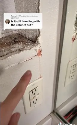 Lexy បានអានខំមិនត៍ទាំងអស់នោះ មុននឹងទូរស័ព្ទទៅប្រឹក្សាជាមួយជាងជួសជុលប្រព័ន្ធទឹក និងក្រោយពីបានស្ដាប់ការណែនាំរួចហើយ នាងក៏ឡើងទៅឯបន្ទប់ក្រោមដំបូលផ្ទះ ដើម្បីពិនិត្យមើលទុយោទឹក ក្រែងលោមានខូចខាត ឬយ៉ាងណា? តែក៏មិនឃើញមានអ្វីខុសប្រក្រតីដែរ ទើបសម្រេចចិត្តដោះទូកញ្ចក់នៅក្នុងបន្ទប់ទឹកនោះចេញ ដើម្បីពិនិត្យមើលឱ្យប្រាកដច្បាស់ថា តើមានអ្វីនៅខាងក្រោយទូនោះ? ហើយនាងក៏បានរកឃើញថា មានកម្ទេចលោហៈនៅនឹងជើងទូ ដែលមានពណ៌ស្រដៀងនឹងទឹកដែលហូរជ្រាបចេញមកនោះ។