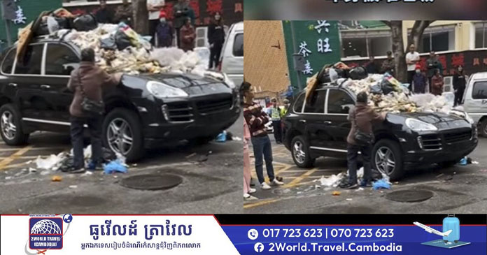 អ្នកប្រើប្រាស់បណ្ដាញសង្គម វើយ-ប៉ “Traffic Safety Shushu” បានស៊ែរឃ្លីបវីដេអូខ្លីមួយកាលពីថ្ងៃទី២៤មេសាកន្លងទៅ ដោយបានបង្ហាញរូបភាពរថយន្តម៉ាកល្បី ១គ្រឿង គ្មានផ្លាកលេខ កំពុងចតនៅលើផ្លូវបំបែកជា៤ ក្នុងទីក្រុងឈុងជឹង ដែលទង្វើនេះបានធ្វើឱ្យសាធារណជន និងអ្នករស់នៅម្ដុំនោះទាំងឡាយ កើតក្ដីក្ដៅក្រហាយយ៉ាងខ្លាំង។ រួចហើយបន្ទាប់ពីនោះមក សុខៗក៏មានមនុស្សយួរ ថង់ខ្មៅ ម្នាក់ ១ថង់ៗ ដើរតម្រង់ទៅកាន់រថយន្តទំនើបនោះ ហើយបោះថង់សំរាមនោះទៅលើរថយន្តនោះ ជាការដាក់ទណ្ឌកម្ម និងថ្កោលទោសម្ចាស់ឡាន ដែលធ្វើដូចខ្លួនឯងឆ្លាតណាស់ យកឡានមកចតពាំងនៅក្នុងទីសាធារណៈបែបនេះ។