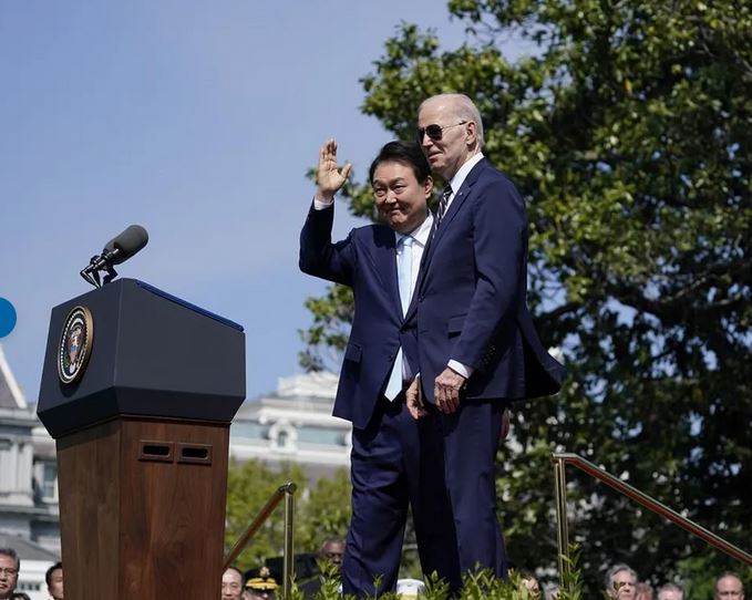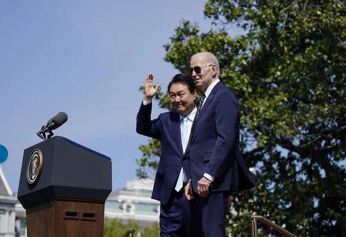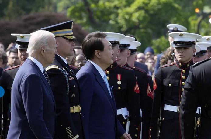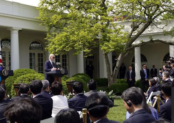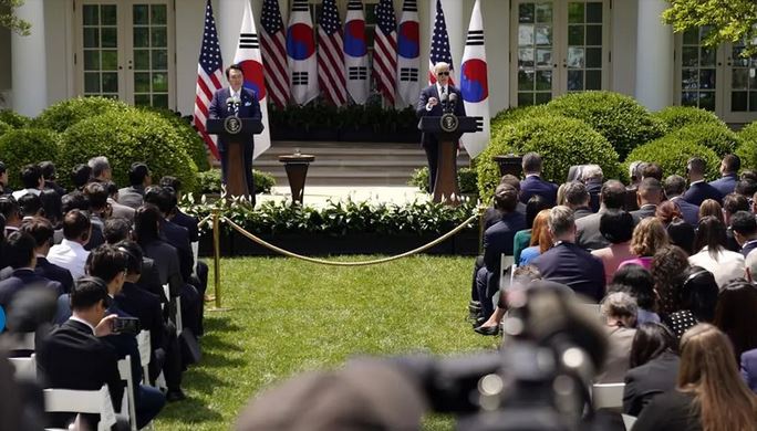 លោក ចូ បៃដិន (Joe Biden) ប្រធានាធិបតីសហរដ្ឋអាមេរិក បានបញ្ជាក់ នៅក្នុងសន្និសីទសារព័ត៌មាននៅសួនផ្កាកូឡាប កាលពីរសៀល ថ្ងៃពុធ ជាមួយនឹងសមភាគីកូរ៉េខាងត្បូង លោក យូន ថា «ការវាយប្រហារណាមួយ ដោយអាវុធនុយក្លេអ៊ែរ ពីប្រទេសកូរ៉េខាងជើង ប្រឆាំងនឹងសហរដ្ឋអាមេរិក ឬ សម្ពន្ធមិត្ត និង ដៃគូរបស់ក្រុងវ៉ាស៊ីនតោន គឺជាការមិនអាចទទួលយកបាននោះឡើយ ហើយលទ្ធផលនេះ នឹងត្រូវតែបញ្ចប់នូវរបបគ្រប់គ្រង នៅក្នុងប្រទេសកូរ៉េខាងជើង»។