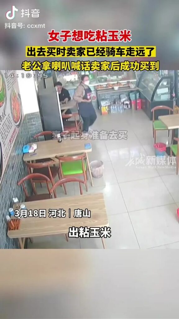 តាមរបាយការណ៍មួយបានឱ្យដឹងថា រឿងរ៉ាវនេះបានកើតឡើងកាលពីពេលថ្មីៗនៅឯមណ្ឌលហ៊ើពេយ ទីក្រុងថាំងសាន ប្រទេសចិន នៅពេលប្ដីប្រពន្ធ ១គូកំពុងអង្គុយជជែកគ្នានៅក្នុងហាងលក់បាយរបស់គ្រួសារ សុខៗ ក៏មានសំឡេងប្រកាសលក់ពោតស្ងោរក្ដៅៗ បន្លឺឡើងនៅខាងក្រៅហាង។