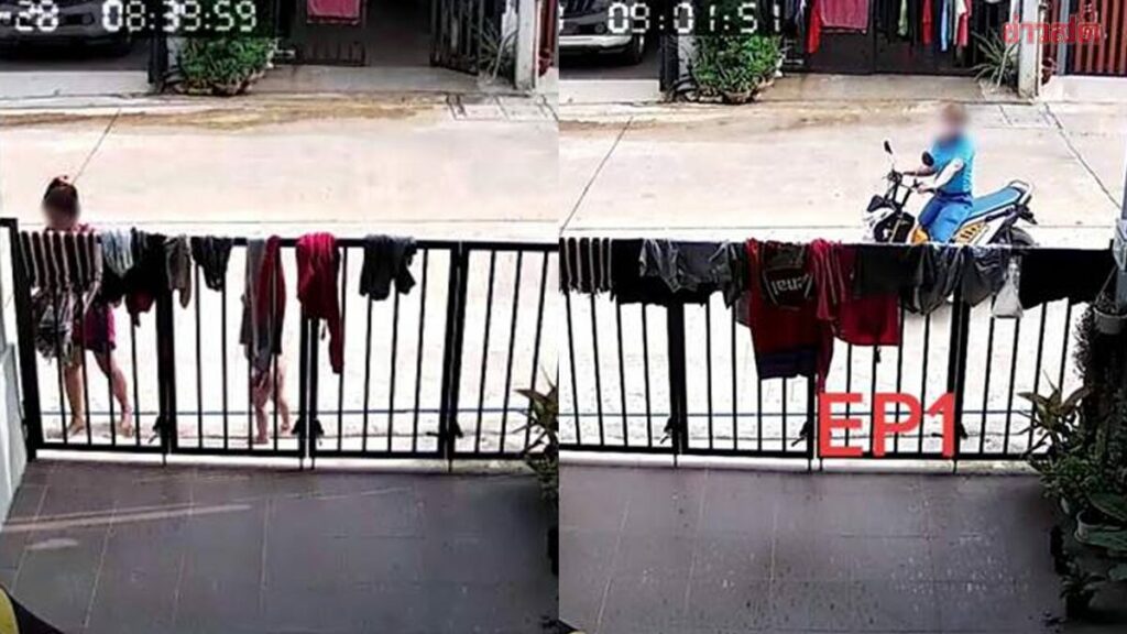 នៅក្នុងឃ្លិបនោះ គេមើលឃើញថា ម្ចាស់ផ្ទះដែលទើបតែជិះម៉ូតូមកពីធ្វើការ ដល់ថ្នាក់ភ្ញាក់ព្រើតនឹងរបងផ្ទះរបស់ខ្លួនឯង ព្រោះមានទាំងខោអាវ ទាំងក្រណាត់ជូតជើង ពាក់ហាលព្រោងព្រាត ពេញនៅលើរបងមុខផ្ទះរបស់ខ្លួន។