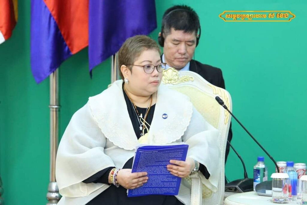 លោកស្រីក៏បានសម្ដែងការកោតសរសើរចំពោះកិច្ចខិតខំប្រឹងប្រែង ក៏ដូចជាសមិទ្ធផលដែលកម្ពុជាខិតខំសម្រេចបាននៅក្នុងការក្លាយទៅជាប្រទេសជ័យលាភីនេះ និងយកឱកាសនេះសម្ដែងការកោតសរសើរចំពោះកិច្ចខិតខំប្រឹងប្រែងរបស់ថ្នាក់ដឹកនាំក្រសួងមហាផ្ទៃ ក្នុងការប្រយុទ្ធប្រឆាំងអំពើជួញដូរមនុស្ស ដែលក៏ដើរស្របទៅនឹងផែនការយុទ្ធសាស្ត្រថ្នាក់ជាតិ។ លោកស្រីក៏បានជម្រាបជូនសម្តេចក្រឡាហោម អំពីស្ថានភាពក្រុមការងារប្រឆាំងការជួញដូរមនុស្សនៅប្រទេសរបស់លោកស្រី គឺប្រទេសហ្វីលីពីន ដែលសម្រេចបានវឌ្ឍនភាពល្អប្រសើរលើការងារប្រយុទ្ធប្រឆាំងការជួញដូរមនុស្ស និងសង្ឃឹមជឿជាក់ថា លោកស្រីអាចយកបទ ពិសោធន៍ល្អទាំងនោះមកចែករំលែកជាមួយនឹងបណ្ដាប្រទេសអាស៊ាន ក្នុងការប្រយុទ្ធប្រឆាំងអំពើជួញដូរមនុស្ស រួមទាំងជាមួយកម្ពុជាផងដែរ។
