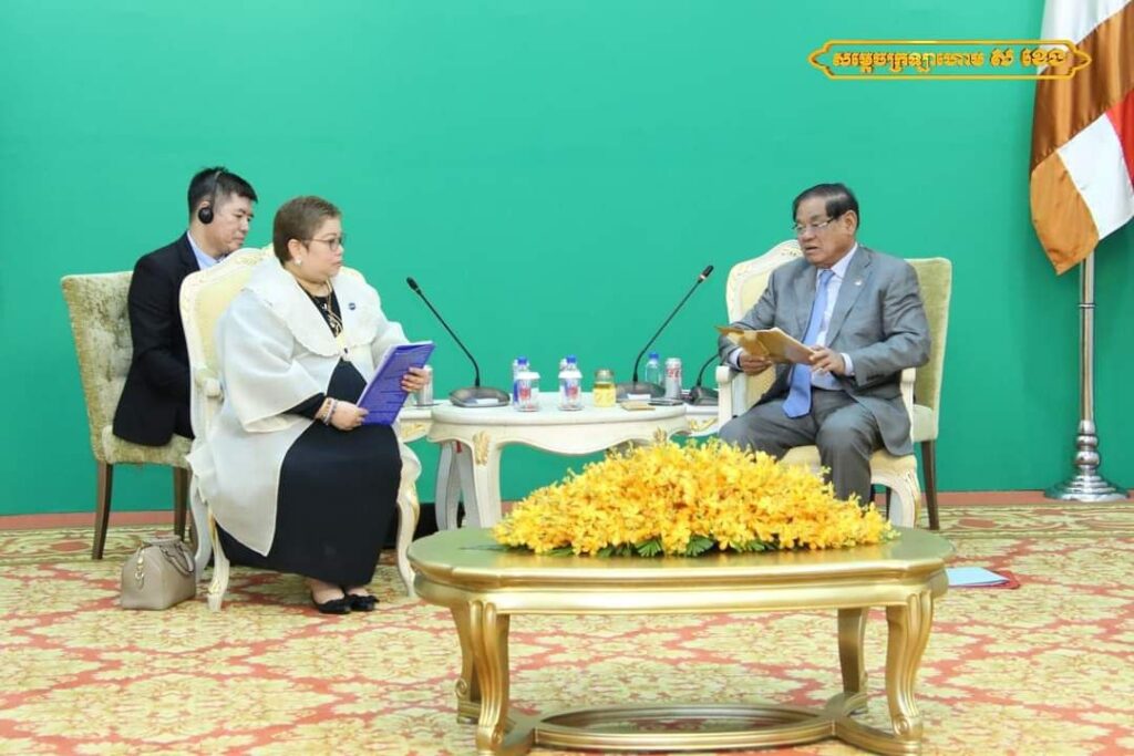 សម្ដេចក្រឡាហោម ស ខេង បានឯកភាពចំពោះអ្វីដែលលោកស្រីបានលើកឡើង ដោយចាត់ទុកការងារប្រយុទ្ធប្រឆាំងនឹងអំពើជួញដូរមនុស្ស និងការជួយសង្គ្រោះជនរងគ្រោះ ជាកិច្ចការមួយដ៏មានសារៈសំខាន់។ ទន្ទឹមនេះសម្ដេចក្រឡាហោម ក៏បានជម្រាបជូនដោយសង្ខេបអំពីកិច្ចការមួយចំនួនទៀតដែលកម្ពុជាបាន និងកំពុងខិតខំធ្វើ គឺទីមួយពាក់ព័ន្ធទៅនឹងការងារប្រយុទ្ធប្រឆាំងការសម្អាតប្រាក់ដែលកម្ពុជា ត្រូវបានដកចេញពីបញ្ជីប្រផេះកាលពីដើមឆ្នាំ២០២៣ ហើយទន្ទឹមនោះ ពាក់ព័ន្ធទៅនឹងការងារប្រយុទ្ធប្រឆាំងនឹងអំពើជួញដូរមនុស្សដែលកម្ពុជាកំពុងខិតខំប្រឹងប្រែងធ្វើការងារនេះ។