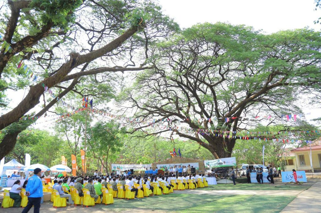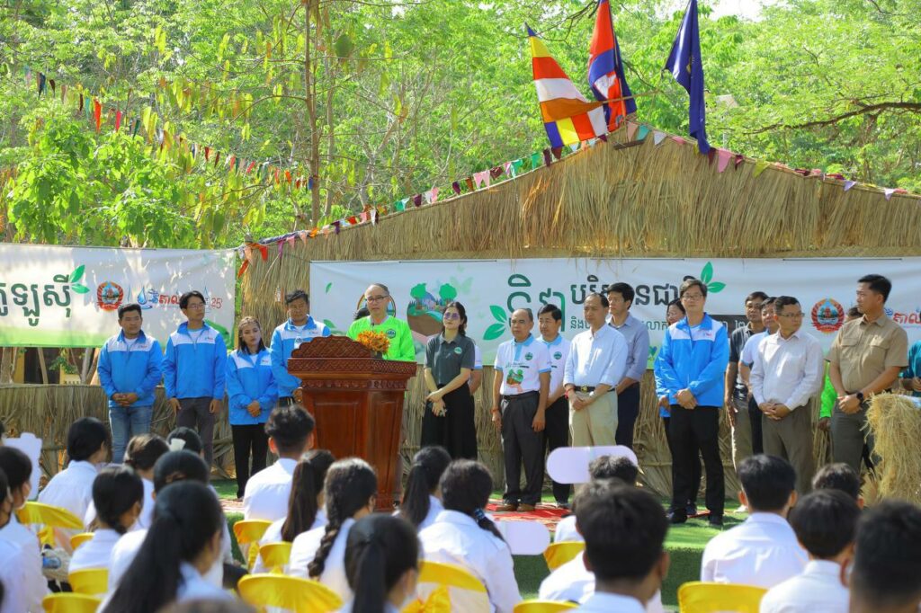 ថ្លែងទៅកាន់សិស្សានុសិស្ស ឯកឧត្តម នេត្រ ភក្ត្រា រដ្ឋលេខាធិការ និងជាអ្នកនាំពាក្យក្រសួងបរិស្ថាន បានចែករំលែកនូវចំណេះដឹងពីបរិស្ថាន ការប្រែប្រួលអាកាសធាតុ និងតើយើងត្រូវធ្វើដូចម្តេចដើម្បីការពារភពផែនដីរបស់យើង ដែលស្របទៅនឹងទិវាបរិស្ថានជាតិ និងបរិស្ថានពិភពលោក ៥មិថុនា ឆ្នាំ២០២៣ ក្រោមប្រធានបទ «ការស្តារឡើងវិញប្រព័ន្ធអេកូឡូស៊ី»។ ឯកឧត្តម បានគូសបញ្ជាក់ទៀតថា ការស្តារឡើងវិញនូវប្រព័ន្ធអេកូឡូស៊ីដើម្បីការពារភពផែនដី គឺត្រូវចូលរួមប្រតិបត្តិមេត្រីបរិស្ថាន និងការពារធនធានធម្មជាតិ ដែលកិច្ចការទាំងនេះ ទាមទារឱ្យមានការចូលរួមពីគ្រប់ភាគីពាក់ព័ន្ធ។ ឯកឧត្តមបានសង្កត់ធ្ងន់ថា «ធម្មជាតិអាចរស់នៅដោយគ្មានមនុស្ស ប៉ុន្តែមនុស្សមិនអាចរស់នៅដោយគ្មានធម្មជាតិបានទេ» ហេតុនេះ យើងត្រូវចូលរួមថែរក្សាបរិស្ថាន និងធនធានធម្មជាតិ។ ឆ្លៀតក្នុងឱកាសនោះដែរ ឯកឧត្តម នេត្រ ភក្ត្រា បានថ្លែងអំណរគុណដល់សិស្សានុសិស្សទាំងអស់ ដែលបានចូលរួម និងមានការយល់ដឹងច្រើនអំពីកិច្ចការពារបរិស្ថាន។ គោលដៅរបស់យើង គឺធ្វើយ៉ាងណាឱ្យមានបរិស្ថានល្អ និងមាននិរន្តរភាពបរិស្ថាន។