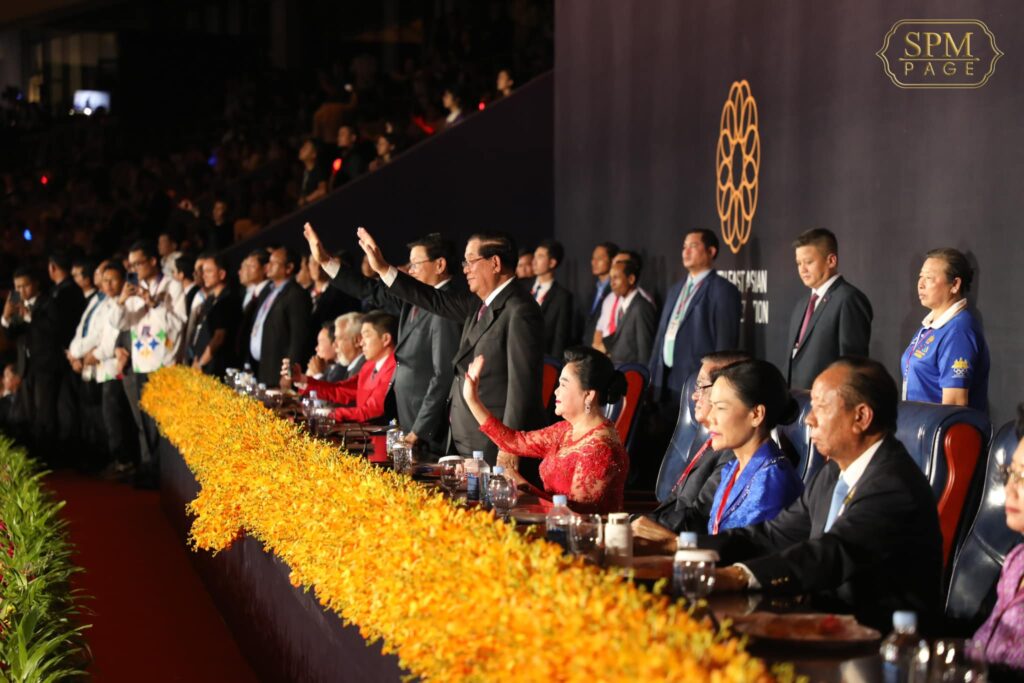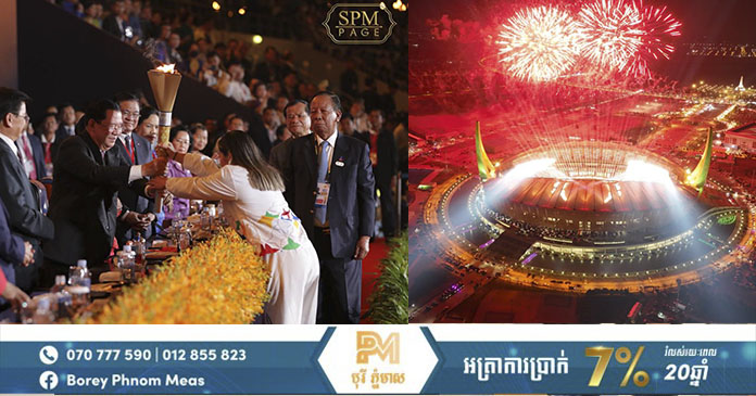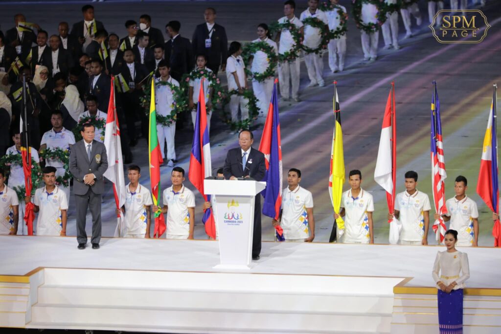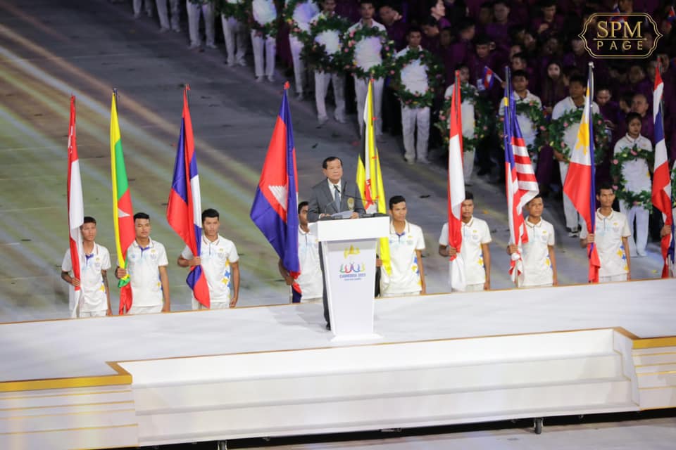 ភ្នំពេញ ៖ នៅរាត្រីថ្ងៃទី៥ ខែឧសភា ឆ្នាំ២០២៣នេះ សម្តេចអគ្គមហាសេនាបតីតេជោ ហ៊ុន សែន នាយករដ្ឋមន្ត្រីនៃព្រះរាជាណាចក្រកម្ពុជា បានអញ្ជើញប្រកាសបើកព្រឹត្តិការណ៍នៃការប្រកួតកីឡាស៊ីហ្គេម លើកទី៣២ ជាផ្លូវការ ប្រកបដោយភាពរីករាយ និងមោទកភាពបំផុតសម្រាប់កម្ពុជាដែលធ្វើជាម្ចាស់ផ្ទះ។