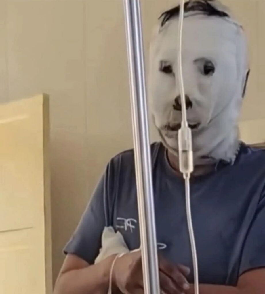 តាមរបាយការណ៍បានឱ្យដឹងថា ហេតុការណ៍នេះបានកើតឡើងកាលពីចុងខែមេសា នៅឯមន្ទីរពេទ្យមួយក្នុងមណ្ឌលហ៊ើណាន ប្រទេសចិន មានបុរសម្នាក់បានរងគ្រោះថ្នាក់ចរាចរណ៍ គេត្រវបានបញ្ជូនទៅបន្ទប់សង្គ្រោះបន្ទាន់ដើម្បីព្យាបាល។ លុះគ្រូពេទ្យជួយធ្វើការជួយសង្គ្រោះរួចហើយ រូបគេក៏ចេញមកវិញព្រមជាមួយក្រណាត់រុំប៉ង់ស៊ីម៉ង់ត៍នៅលើផ្ទៃមុខដ៏ “គួរឱ្យភ័យខ្លាច” តែធ្វើឱ្យមនុស្សម្នាដែលនៅទីនោះ បាននាំគ្នាអស់សំណើចយ៉ាងខ្លាំងនៅពេលបានឃើញហើយ។