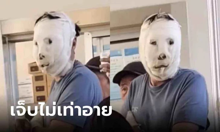 តែសំណាងល្អដែរ ព្រោះបន្ទាប់ពីនោះមក មនុស្សជាច្រើនបានជួយនិយាយលើកទឹកចិត្តគេថា ការរុំរបួសបែបនេះ វាជួយឱ្យជនរងគ្រោះដកដង្ហើមស្រួល និងមើលឃើញច្បាស់ អាចញ៉ាំអាហារ និងជក់បារីបានងាយស្រួលទៀតផង ទើបរូបគេព្រមស្ងប់ចិត្ត និងលែងសូវខឹង៕