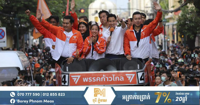 រាជធានីបាងកក៖ ប្រទេសថៃ បានបោះជំហានទៅមុខ សម្រាប់ជាពេលវេលាដ៏សំខាន់មួយ នៅក្នុងប្រវត្តិសាស្ត្រនយោបាយរបស់ខ្លួន ហើយវាជាព្រឹត្តិការណ៍ថ្មីមួយផ្សេងទៀត ក្រោយការបោះឆ្នោតសកល កាលពីថ្ងៃអាទិត្យ ទី១៤ ខែឧសភា ស្របពេលគណបក្សប្រឆាំងធំៗរបស់ប្រទេសអាស៊ានមួយនេះ ទទួលបានសំឡេងគាំទ្រខ្លាំង នាំមុខគណបក្ស ជាសម្ពន្ធមិត្តរបស់ពួកយោធានិយម។