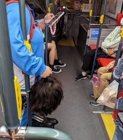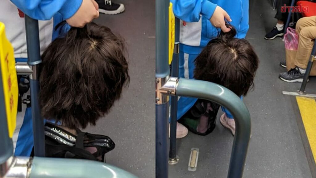 អ្នកលេងបណ្ដាញសង្គមម្នាក់ បានផូស្តរូបភាព ព្រមជាមួយសំណេរនៅក្នុងហ្វេសប៊ុក ដោយបានបញ្ជាក់ថា “ឃើញភ្លាម ភ័យឡើងចង់រាកនោម…” ដោយបង្ហាញឱ្យឃើញពីរូបភាពក្មេងស្រីជាកូនសិស្សម្នាក់ ស្លៀកឈុតកីឡាពណ៌ពងក្រសាចាស់ ឈរនៅក្នុងរថយន្តក្រុង ដោយដៃខាងស្ដាំកំពុងក្បាលមនុស្ស ដែលមើលទៅ ឃើញគួរឱ្យខ្លាចយ៉ាងពន់ពេក។