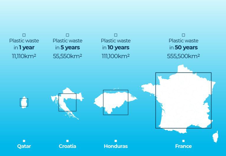សារព័ត៌មាន Al Jazeera បានចេញផ្សាយ កាលពីព្រឹក ថ្ងៃសុក្រ ទី៩ ខែមិថុនា ថា ជារៀងរាល់ឆ្នាំ ផលិតផលប្លាស្ទិក ប្រហែលជា៤០០លានតោន ត្រូវបានផលិត នៅទូទាំងពិភពលោក។ ប៉ុន្ដែនៅក្នុងចំណោមផលិតផលទាំងនោះ មានប្រហែលពាក់កណ្ដាល ត្រូវបានប្រើប្រាសជាសម្ភារផ្សេងៗ ដូចជា ថង់ ពែង ឬ កែវ និង សម្ភារវេចខ្ចប់ផ្សេងៗទៀត … ជាដើម។ ចំណែកកាកសំណល់ប្លាស្ទិកទាំងនេះ ប្រហែលចន្លោះពី៨លានទៅ១០ លានតោន បានហូរទៅកាន់សមុទ្រ ជារៀងរាល់ឆ្នាំ។ ប្រសិនបើគេនិយាយ អំពីកម្រាស់ថង់ប្លាស្ទិកទាំងនោះ អាចនឹងគ្របដណ្តប់គ្រប់គ្រាន់ សម្រាប់ផ្ទៃដី ទំហំ ១១ ០០០គីឡម៉ែត្រការ៉េ ហើយវាស្មើនឹងប្រហែលទំហំប្រទេសតូចៗ ជាច្រើន មានដូចជា កាតារ(Qatar) ចាម៉ៃកា (Jamaica) ឬ បាហាម៉ា(Bahamas)។