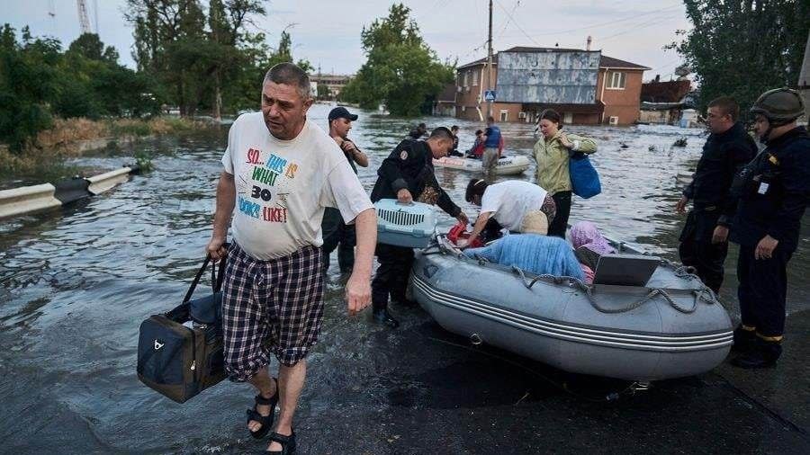 ការបំផ្លិចបំផ្លាញនៃទំនប់នេះ បណ្តាលឱ្យទឹកហូរចូលទៅក្នុងទន្លេ ឌីនីប៉្រូ (Dnipro) ដែលជំរុញឱ្យជនស៊ីវិលរាប់ម៉ឺននាក់ភៀសខ្លួនចេញពីតំបន់លិចទឹក។