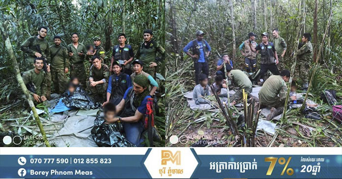 ក្មេង ៤នាក់ បានរួចជីវិតយ៉ាងមិនគួរឱ្យជឿ ក្រោយបាត់ខ្លួនសូន្យឈឹងនៅក្នុងព្រៃអាម៉ាហ្សូន ៤០ថ្ងៃ។ អាជ្ញាធរផ្ដុំកម្លាំងរុករក ក្រោយធ្លាក់យន្តហោះកណ្ដាលព្រៃជ្រៅ។