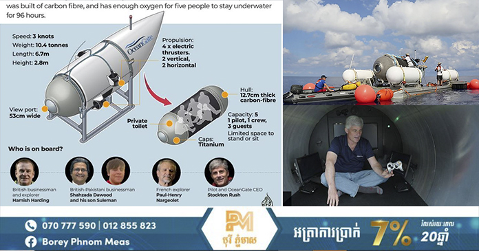 រដ្ឋធានីវ៉ាស៊ីនតោន៖ កងឆ្មាំសមុទ្រសហរដ្ឋអាមេរិក កាណាដា និង បណ្ដាប្រទេសជាដៃគូ កំពុងតែសង្កត់ធ្ងន់ ទៅលើកិច្ចខិតខំប្រឹងប្រែងស្វែងរកក្រុមអ្នកទេសចរ ជាមហាសេដ្ឋី ដែលបានបាត់ខ្លួន ខណៈធ្វើដំណើរតាមនាវាមុជទឹក ទៅទស្សនាកប៉ាល់ទីតានិក (Titanic) ដែលបានលិច នៅក្នុងអំឡុងឆ្នាំ១៩១២ នៅភាគខាងជើង នៃមហាសមុទ្រអាត្លង់ទិក។