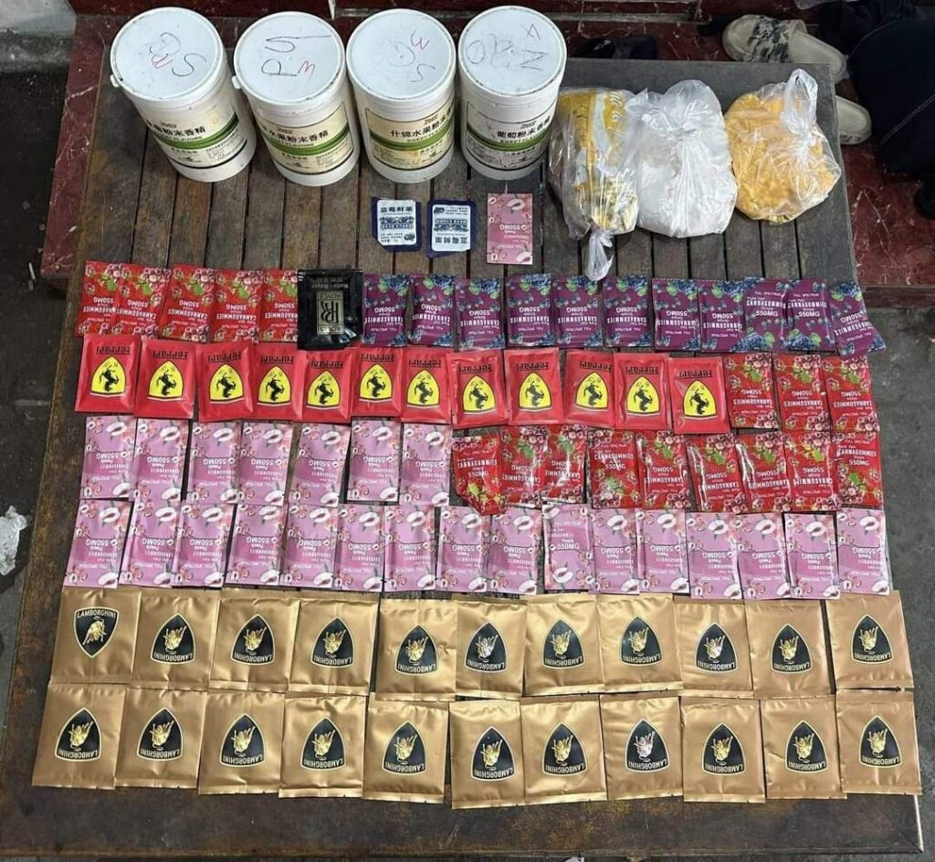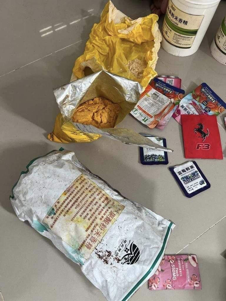 សមត្ថកិច្ចចាប់បាន និងដកហូតវត្ថុតាងរួមមាន : ថ្នាំញៀនម្សៅកញ្ចប់ ប្រភេទ MDMA សរុបចំនួន ៨៩កញ្ចប់ ទំងន់ ៩៣៥ក្រាម។ ឧបករណ៍កែច្នៃផលិតគ្រឿងញៀនមួយចំនួន និងសារធាតុផ្សំ សរុបទំងន់ ២២គីឡូក្រាម។