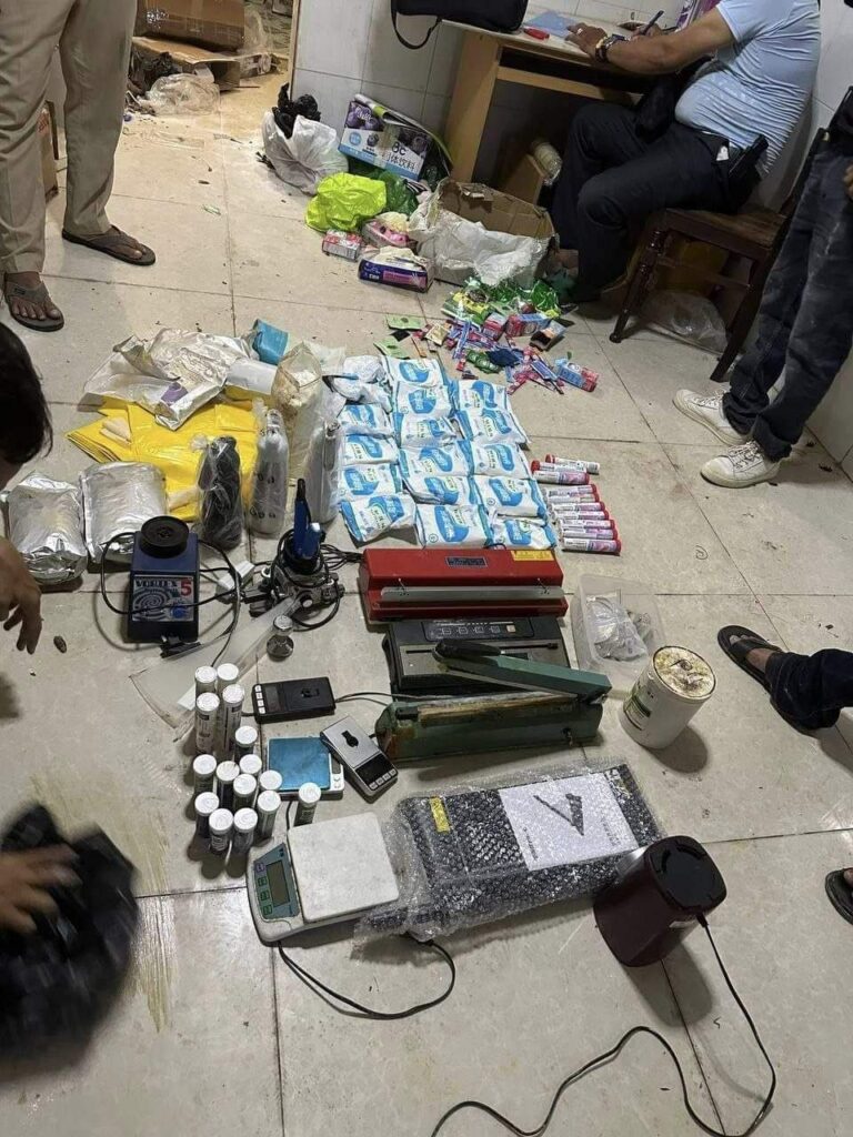 រាជធានីភ្នំពេញ៖ លោកឧត្តមសេនីយ៍ត្រី គល់ យី ស្នងការរងទទួលផែនការងារប្រឆាំងគ្រឿងញៀន បានដឹកនាំកម្លាំងនគរបាលប្រឆាំងគ្រឿងញៀន ប្រតិបត្តិការស្រាវជ្រាវ និងបង្រ្កាបករណីជួញដូរដោយខុសច្បាប់នូវសារធាតុញៀន ឃាត់ខ្លួនជនសង្ស័យចំនួន៥នាក់ និងឧបករណ៍កែច្នៃផលិតគ្រឿងញៀន រួមនិងសារធាតុផ្សំ សរុបជិត ២៣គីឡូក្រាម ដែលបានធ្វើឡើងកាលពីថ្ងៃទី២៦ ខែកញ្ញា ឆ្នាំ២០២៣ នៅទីតាំងចំនួន៤ក្នុងរាជធានីភ្នំពេញ។