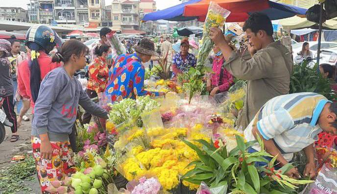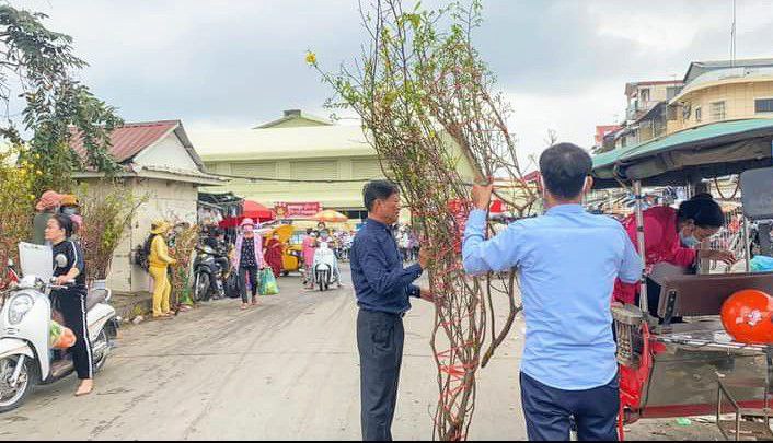 គ្រឿងតាំងលម្អក្នុងពិធីបុណ្យចូលឆ្នាំចិននេះ ប្រជាជនចិន សែស្រឡាយចិន ឬពលរដ្ឋខ្មែរកូនកាត់ចិន មិនអាចចោលបាននោះទេ គឺផ្កាអង្គាសីល និងផ្កាស្បៃរឿង គេ មានជំនឿថា ផ្កាស្បៃរឿង តំណាងឱ្យភាពរុងរឿង ភ្លឺត្រចះត្រចង់, ចំណែកផ្កាអង្គាសីល តំណាងឱ្យសិរី សួស្តី ភាពរីករាយ ទន់ភ្លន់ សុភមង្គល និង រកស៊ីមានបានកើនទ្រព្យសម្បត្តិ, (សូមបញ្ជាក់ថា ជនជាតិវៀតណាម ក៏ចូលឆ្នាំក្នុងវេលាជាមួយគ្នានឹងជនជាតិចិនផងដែរ)។